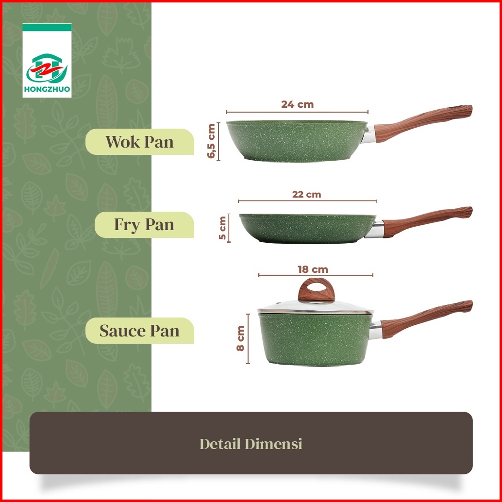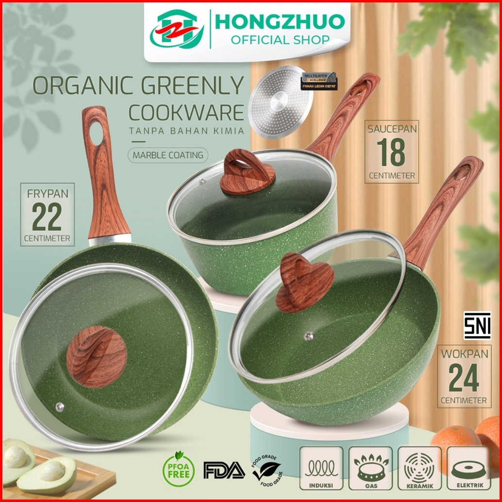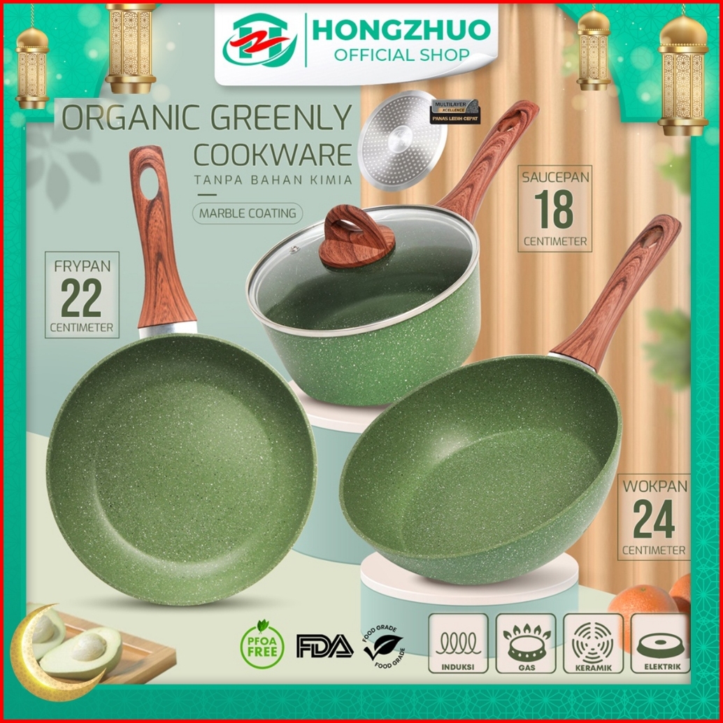 Tifale By Hongzhuo 3in1 Organic Greenly Cookware Marble Coated Anti Lengket Handle Bakelite Silicone Anti Leleh Avocado