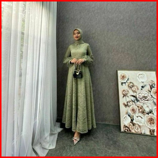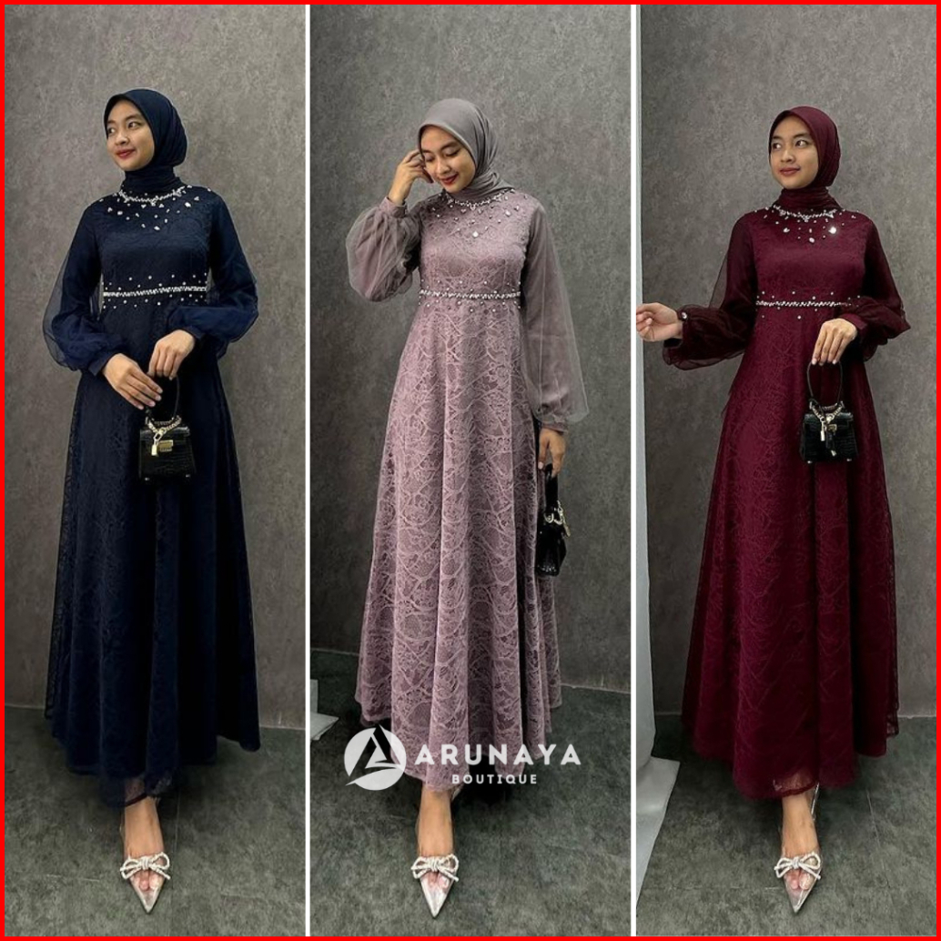 Dress Exclusive Gamis Lebaran Terbaru Dress Kondangan Gamis Brukat Maxi Pesta Lamaran Tunangan Kekinian Seragam Bridesma