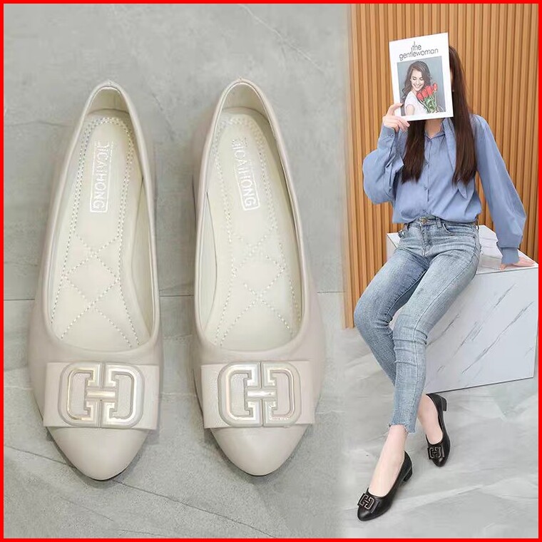 Plk Kai Sepatu Flat Shoes Wanita Hak Sepatu Bahan Jelly Mules Hak Tahu Sepatu Kerja Tg1597