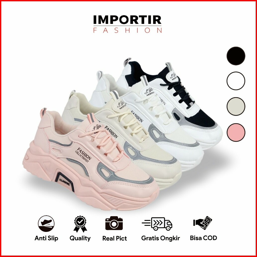 Importirfashion Free Kotak Via 0024 Sepatu Sneakers Wanita Korea Import Cewek Sekolah Pu Kulit Sintesis Premium Quality