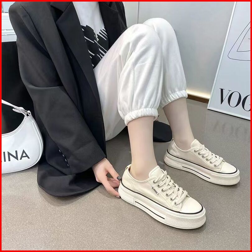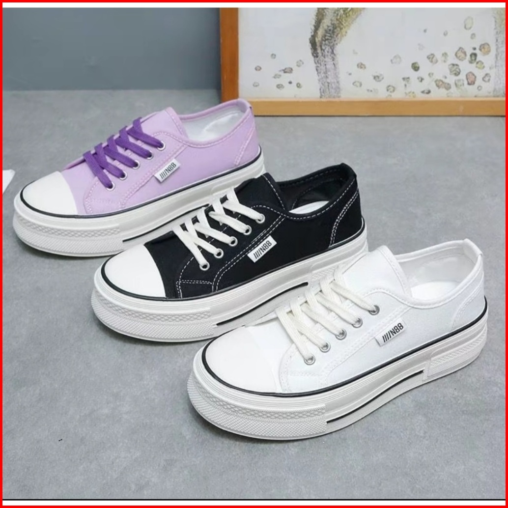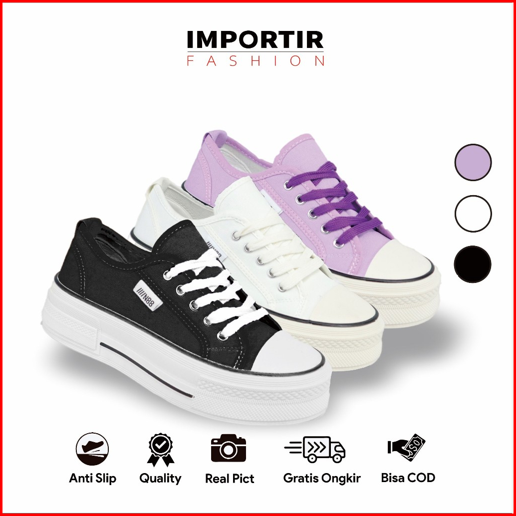 Importir.fashion Carly 1276 Sepatu Wanita Sneakers Sekolah Kanvas Tebal Kekinian Size 36-41