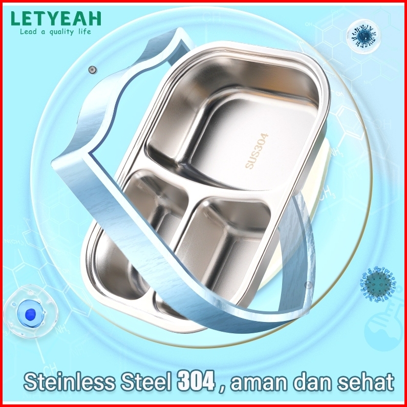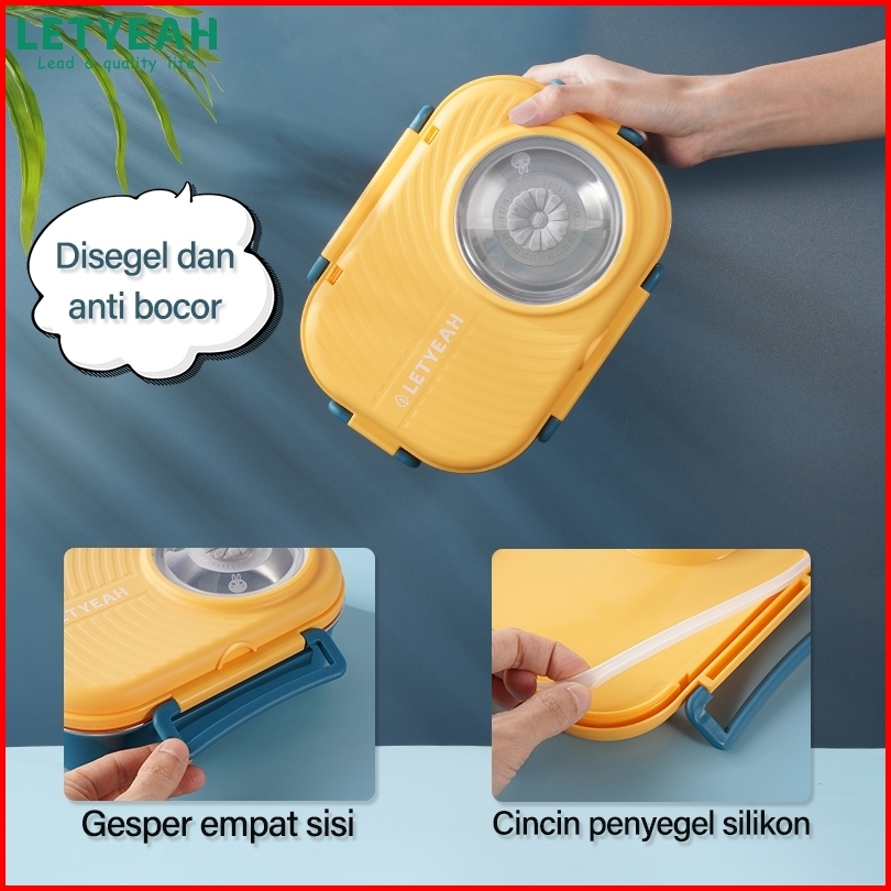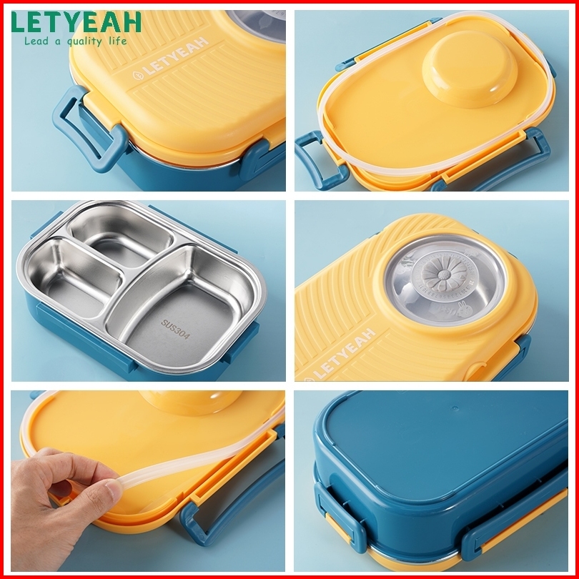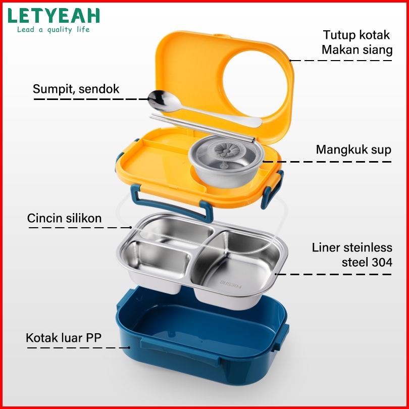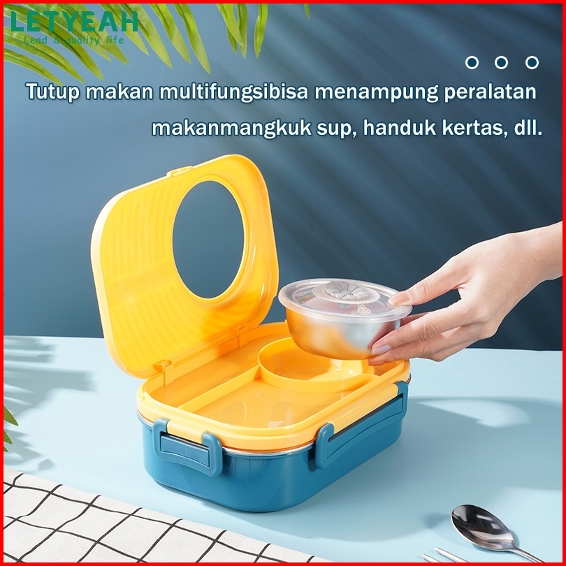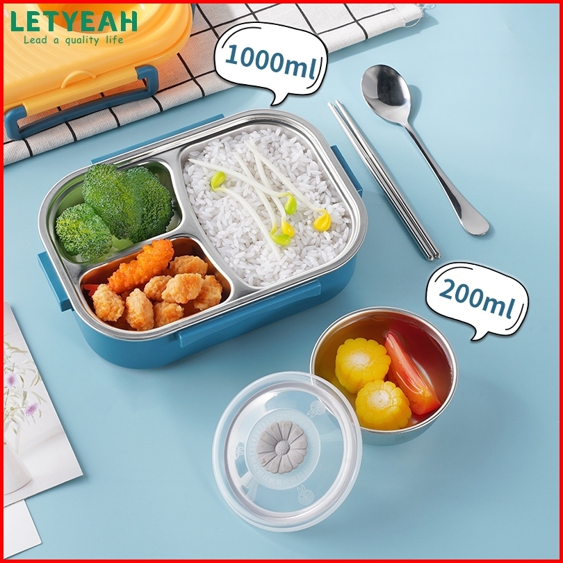 Letyeah Kotak Makan Set 1200ml Stainless 304 Sekat 3 Lunch Box Dan Tas Free Sendok Sumpit
