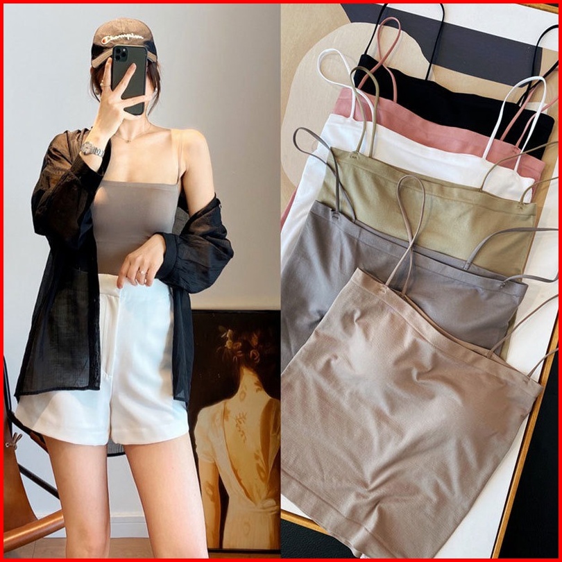 Onefashionmall Br003 Tanktop Bra Wanita Tank Top Polos Panjang Basic Square Fashion Tali Spaghetti