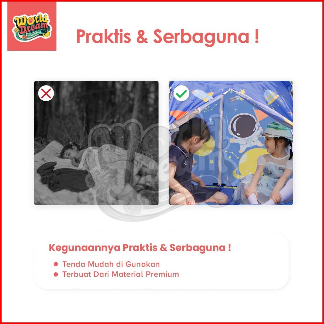 Worldream Tenda Camping Tenda Karakter Rumah Camping Motif Hello Kitty Frozen Spiderman Princess