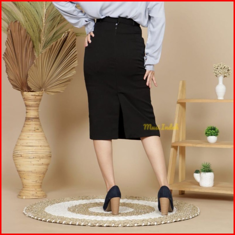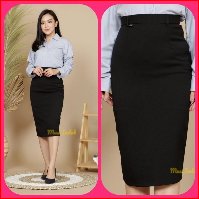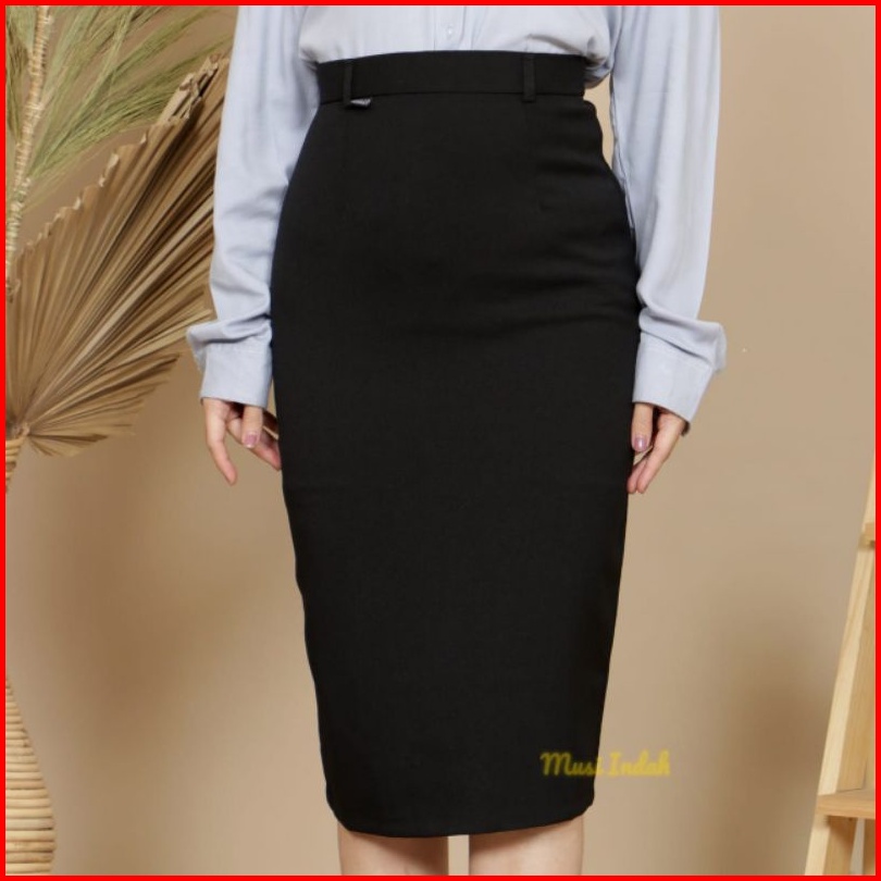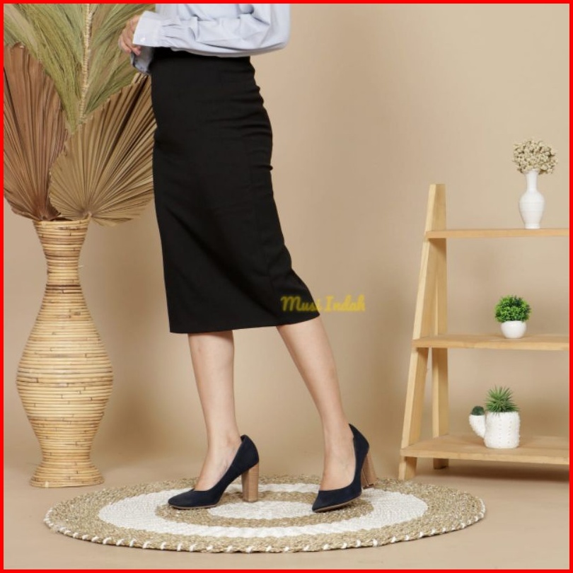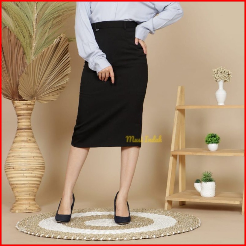 Rok Kerja Pendek Hitam 7 8 Span Bahan Formal Premium