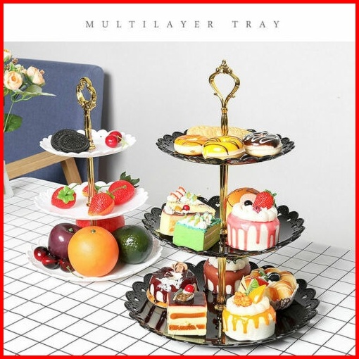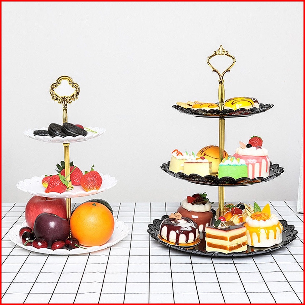 Rak Tingkat 3 Susun Tempat Makan Kue Buah Cake Plate Stand Food Display