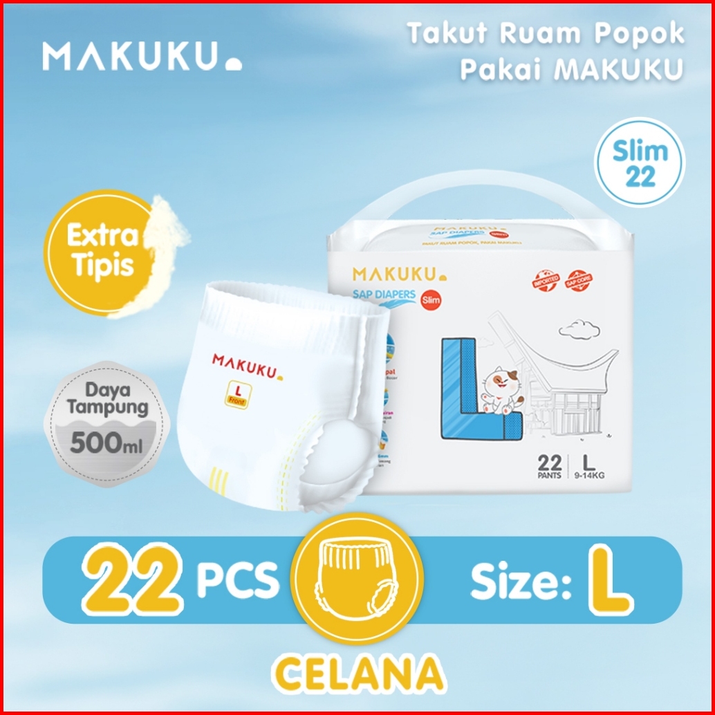 Makuku Sap Diapers Slim Pants L22 Popok Bayi Tipis Extra Dry Anti Gumpal Mengunci Cairan Cepat Kering Type Celana Ukuran