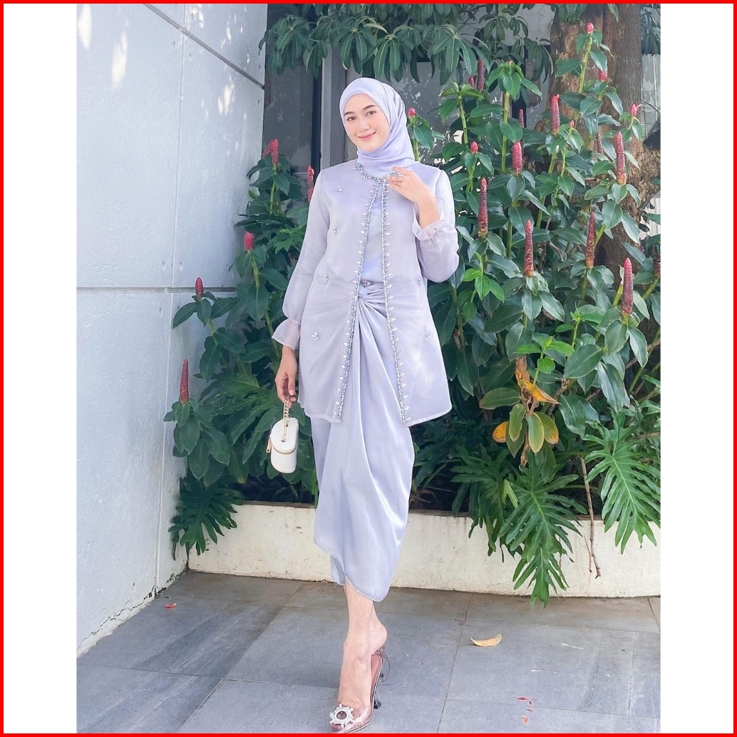 Oneset Wanita Kekinian Setelan Organza Baju Kondangan Kebaya Wisuda Rok Lilit
