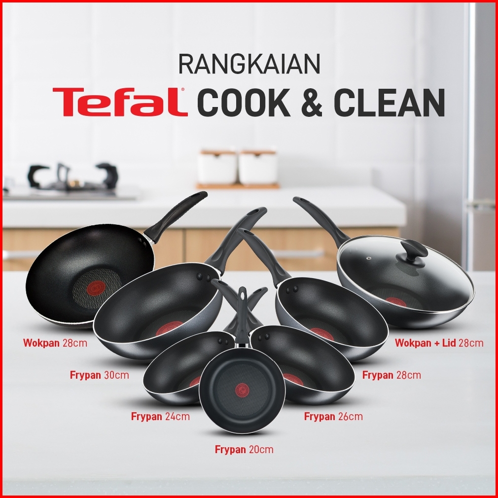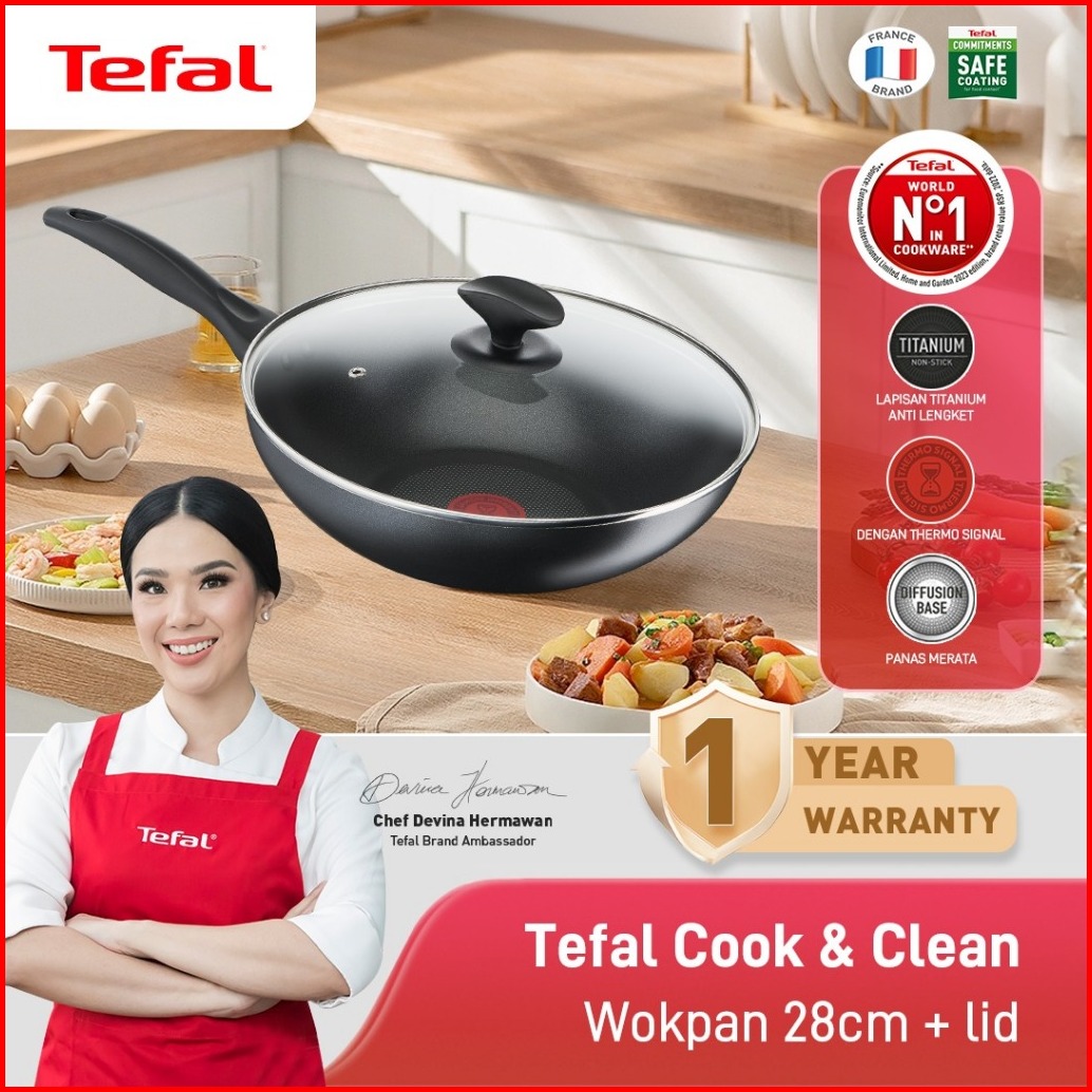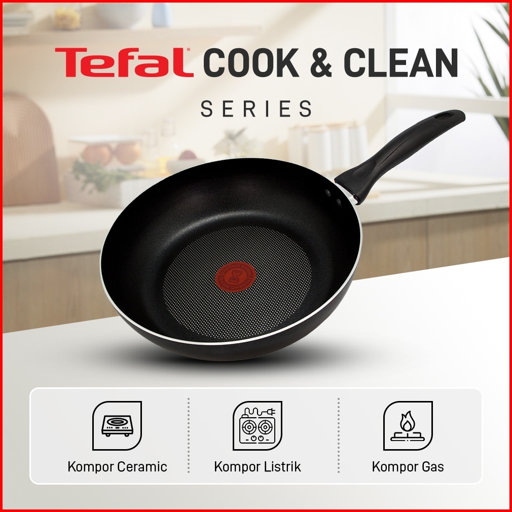 Best Seller Tefal Cook Clean Wokpan 28 Cm Gratis Tutup Wajan Anti Lengket Penggorengan Pan - Garansi 1 Tahun