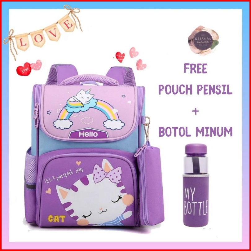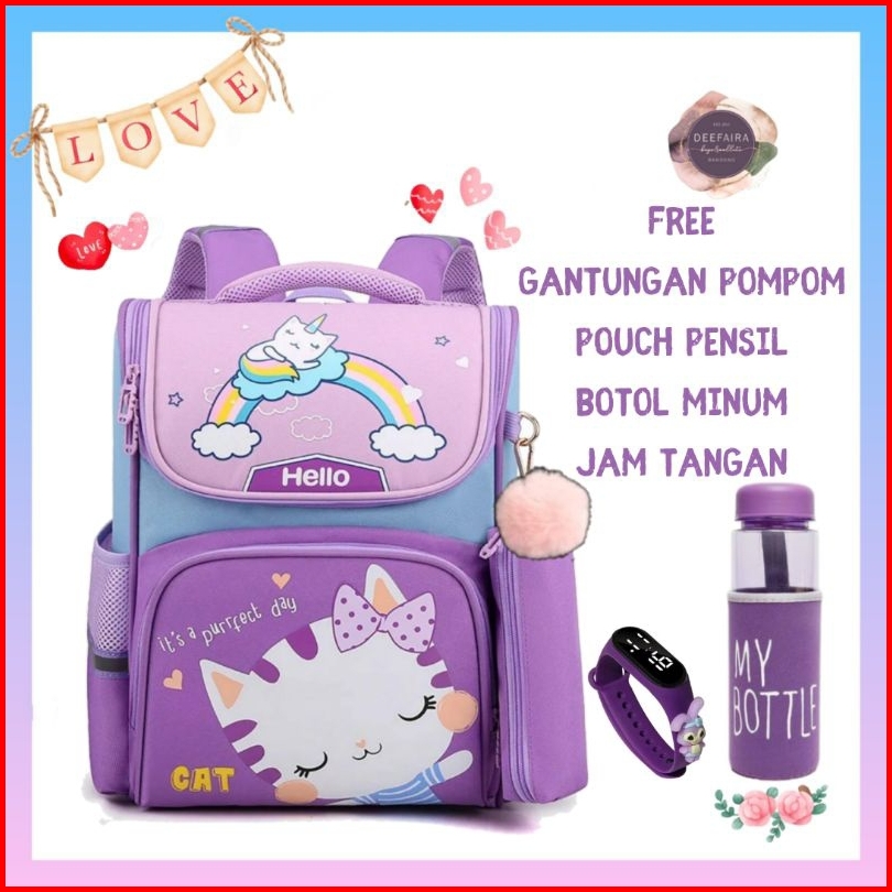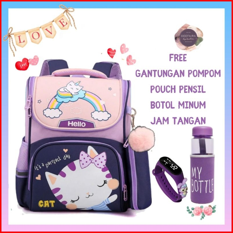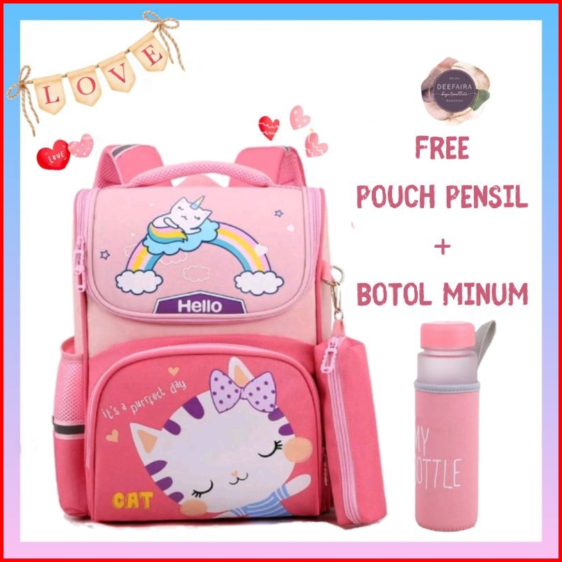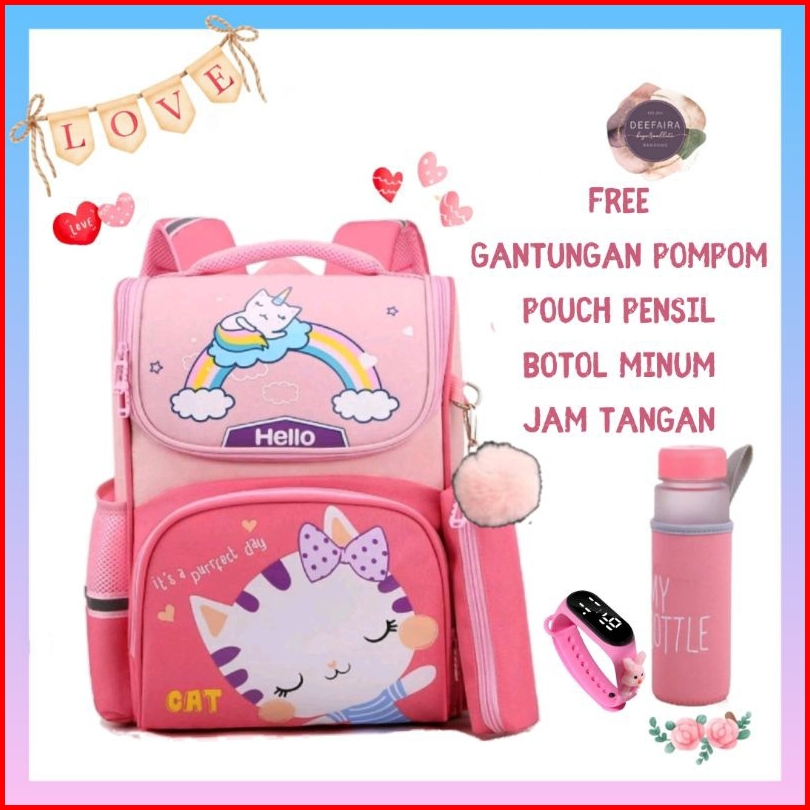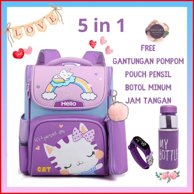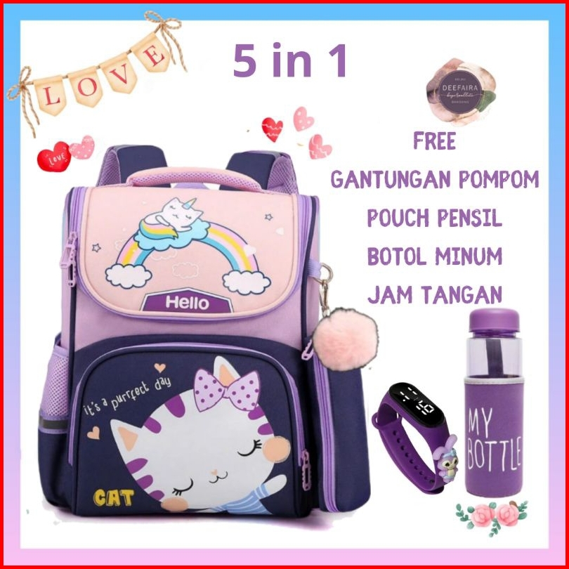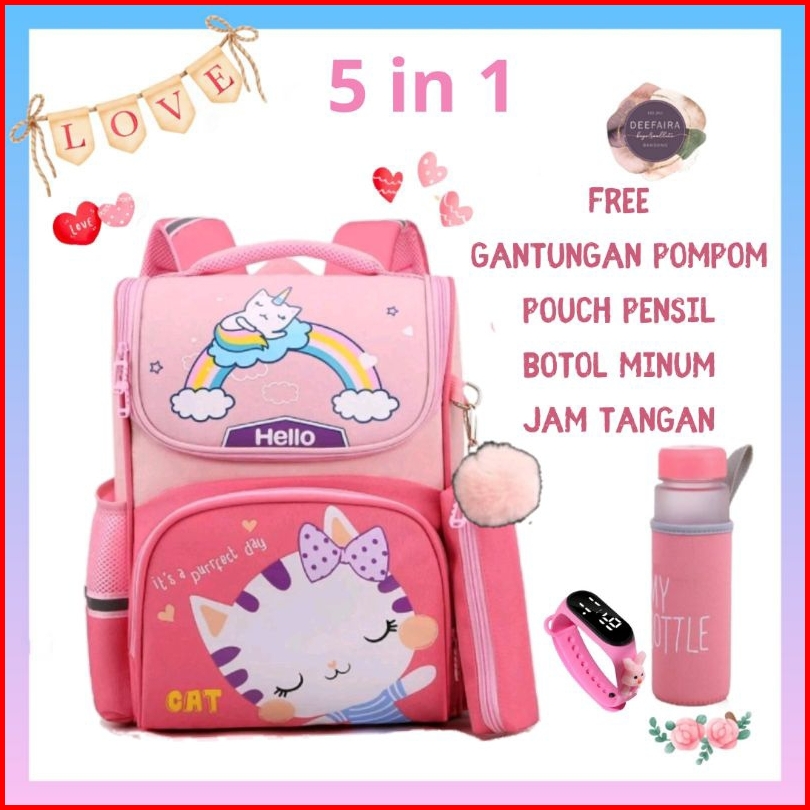 Paket 5in1 Tas Anak Perempuan Karakter Lucu Its Perfect Day Cat Hellow239 Kekinian Terbaru Terlaris Ransel Backpack Seko