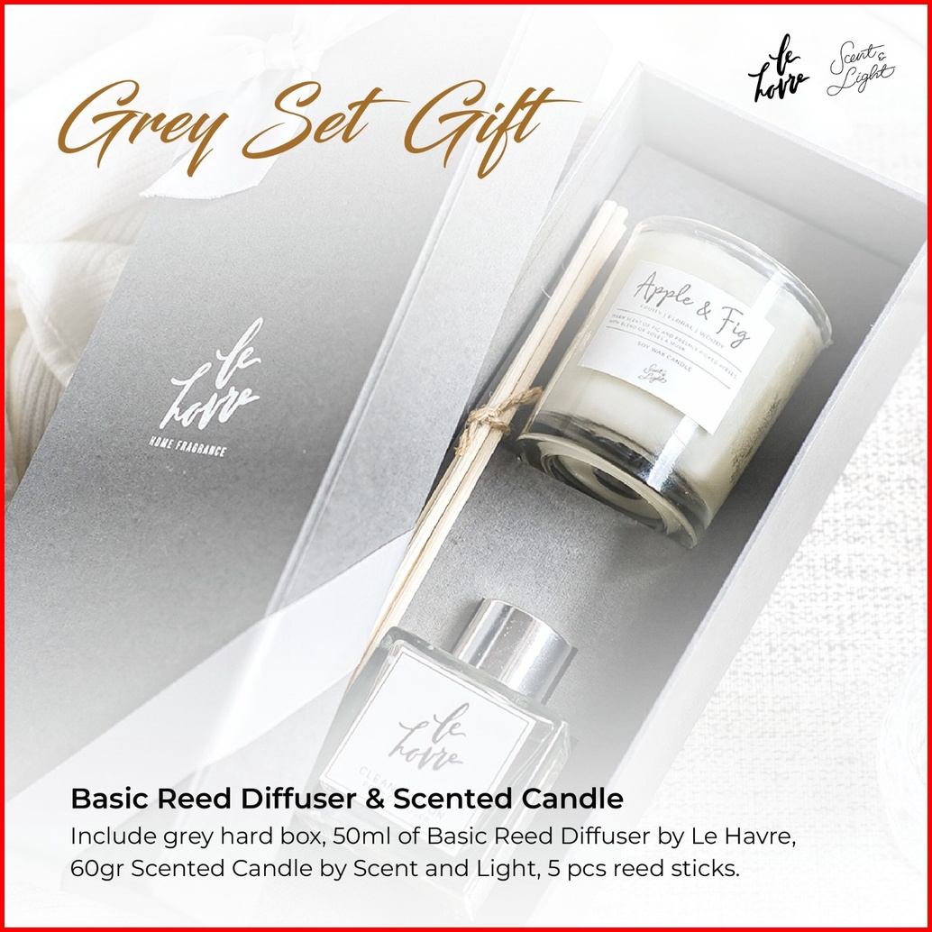 Le Havre X Scent And Light - Grey Gift Set Hard Box Scented Candle Reed Diffuser