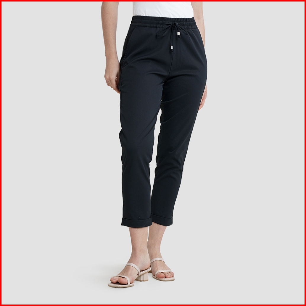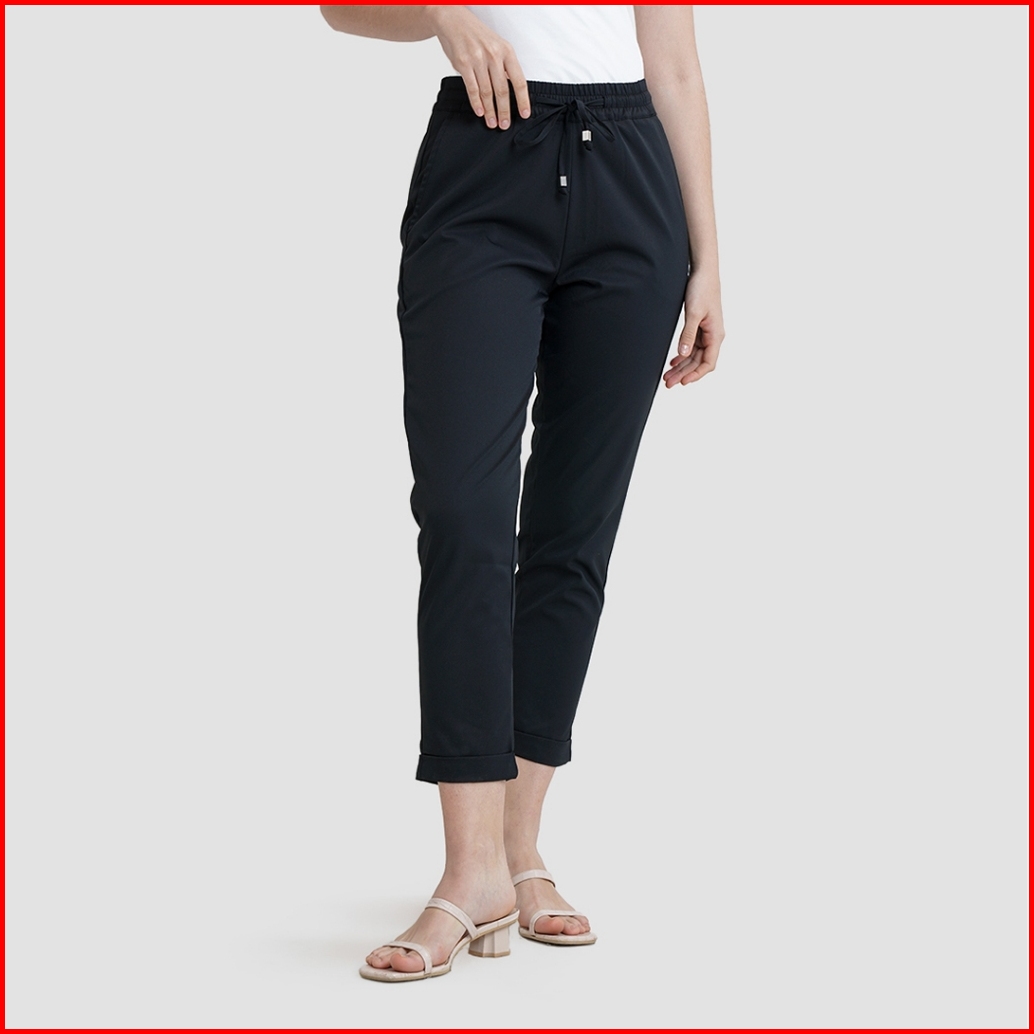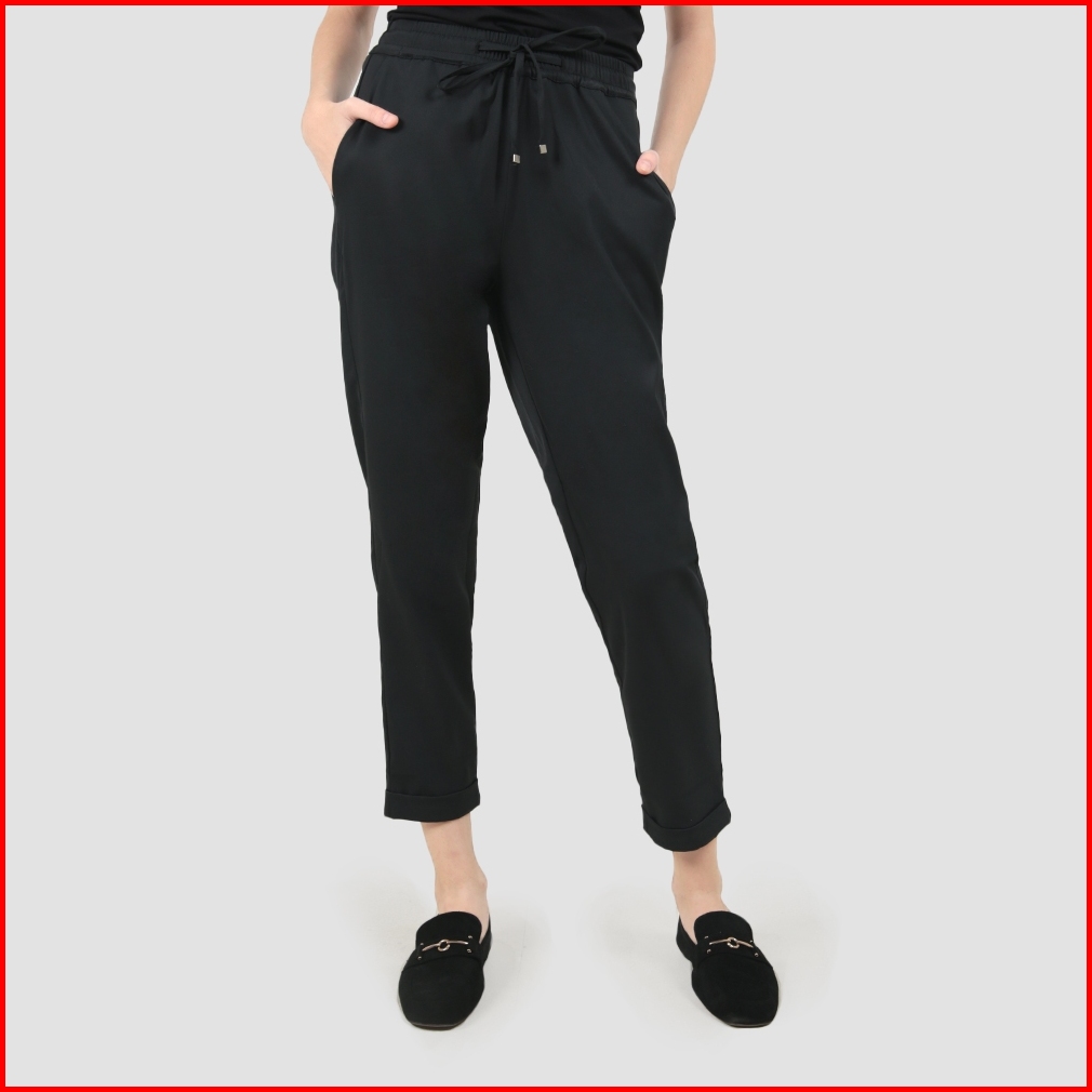 Mississippi Roll Up Tali Celana Bahan Wanita Panjang Lin000405m Hitam