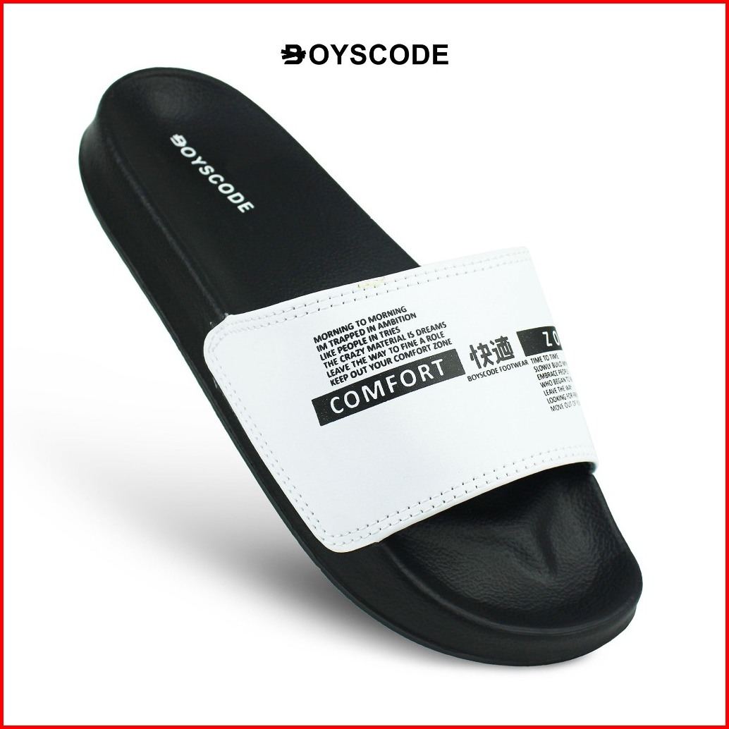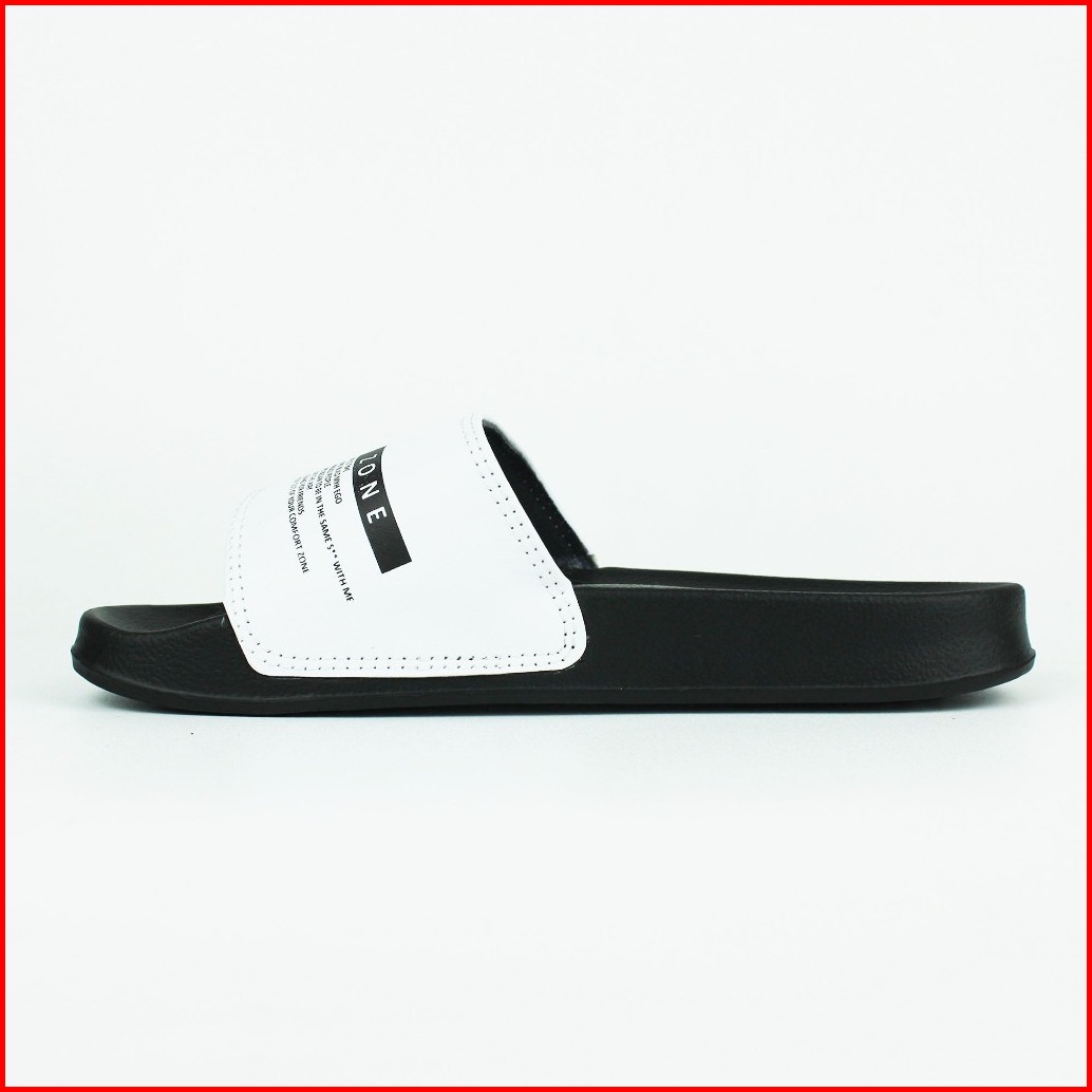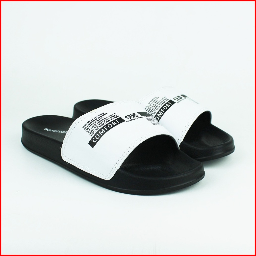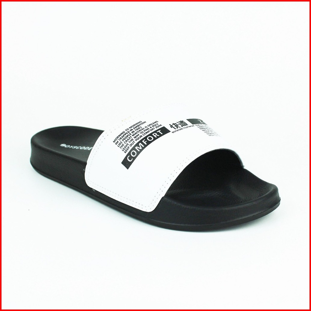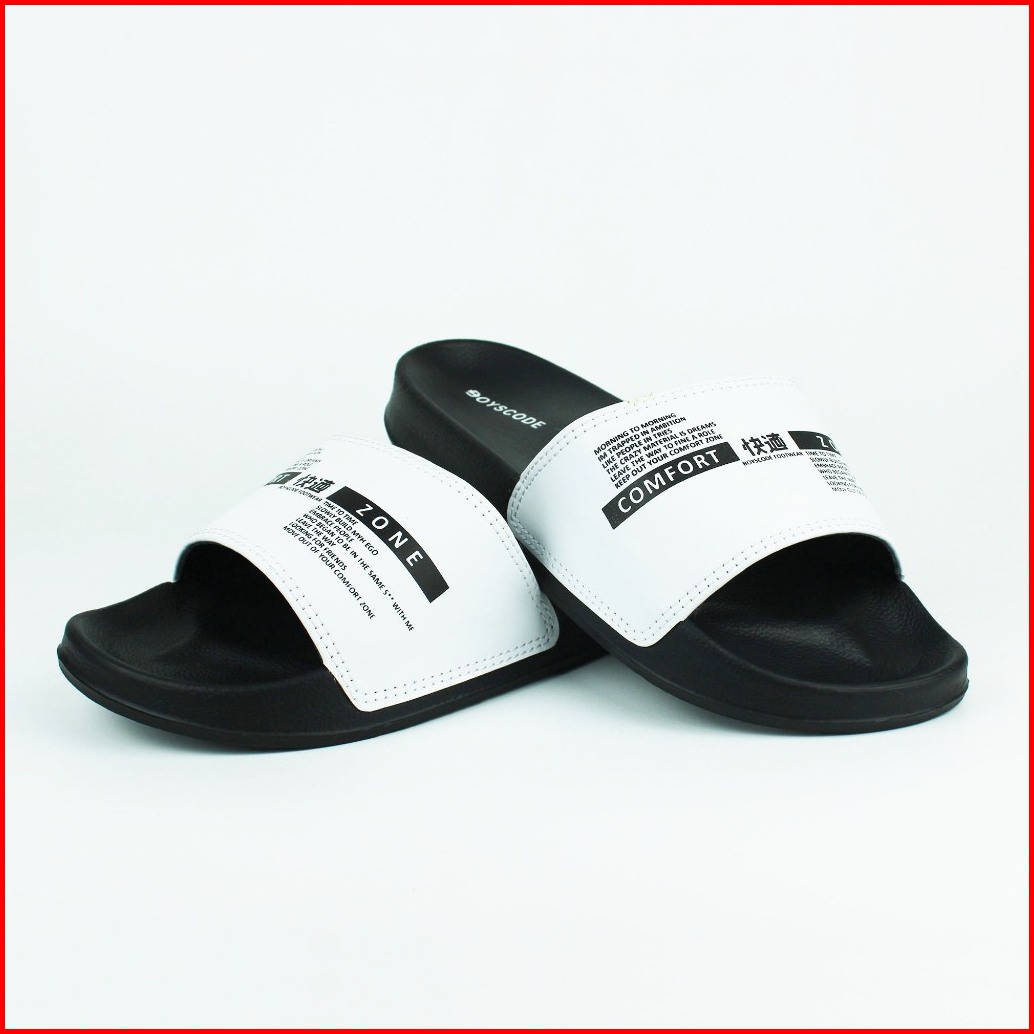 Sendal Selop Karet Distro Pria Wanita Boyscode Comfort Zone Hitam Putih Sandal Kekinian