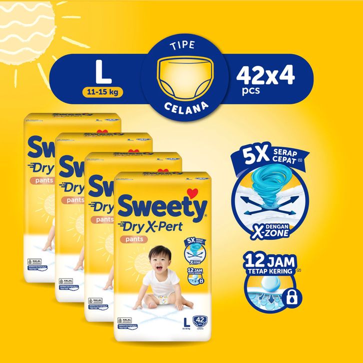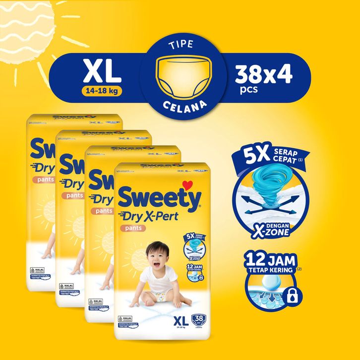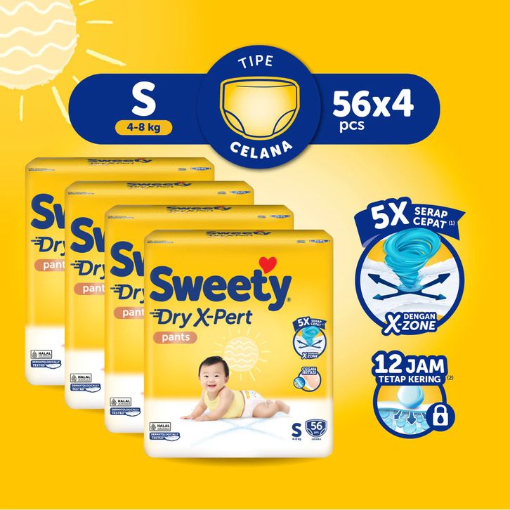 Paket 4 Pack Popok Bayi Sweety Bronze Pants Dry X-Pert S56 M48 L42 XL38 XXL34 Popok Celana Sekali pake