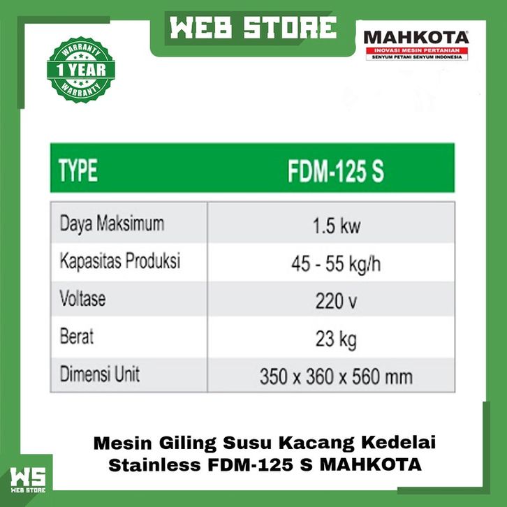 Mesin Giling Susu Kacang Kedelai Grinder Stainless FDM-125 S Mahkota