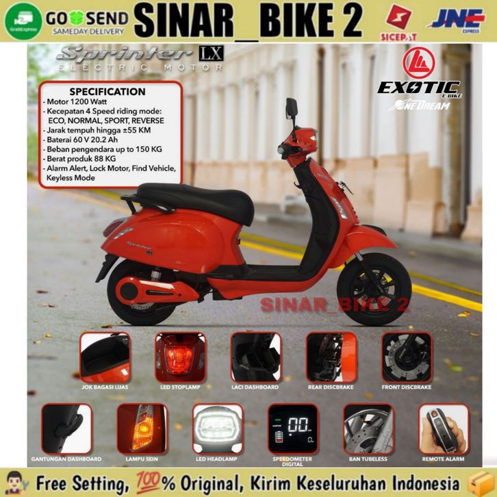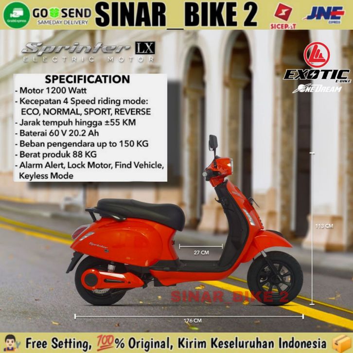 Sepeda Motor Listrik Electric EXOTIC SPRINTER LX Vespa 1200 Watt (NEW COLOR)