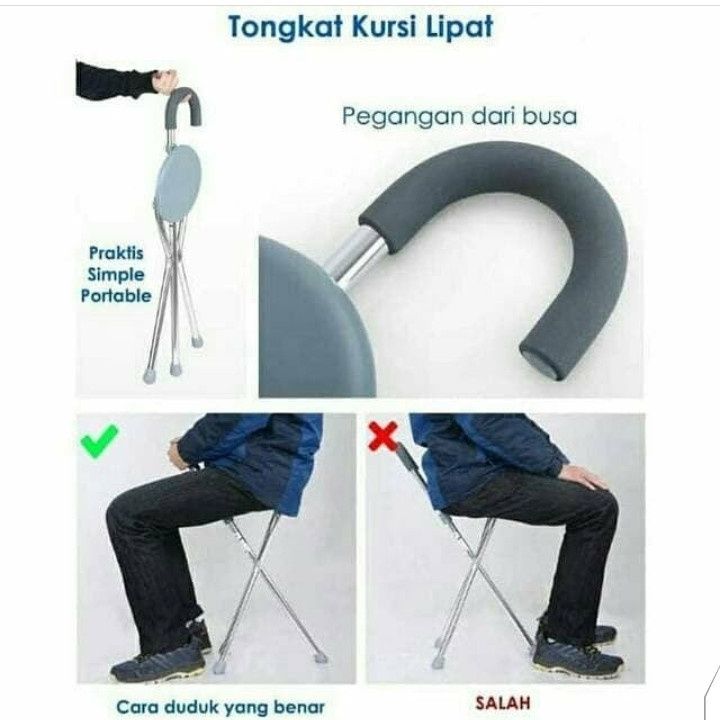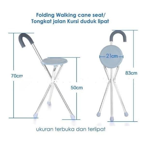 Tongkat Alat Bantu Jalan 2in1 Kursi Lipat Bahan Stainless & Aluminium – Ringan, Kuat, Anti Slip, Cocok untuk Lansia & De