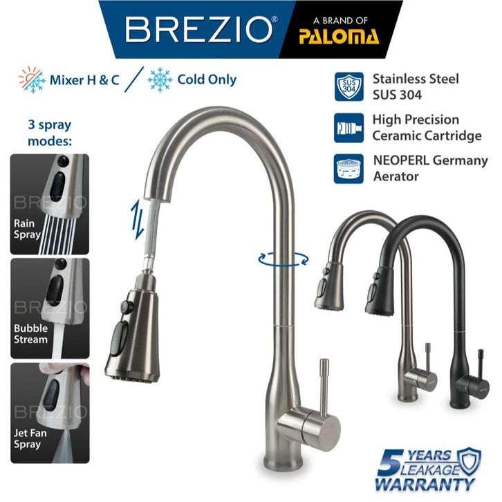 BREZIO Keran Dapur Fleksibel Tarik – Kran Cuci Piring Panas Dingin Pull Down Stainless FCBZ 8152/8162