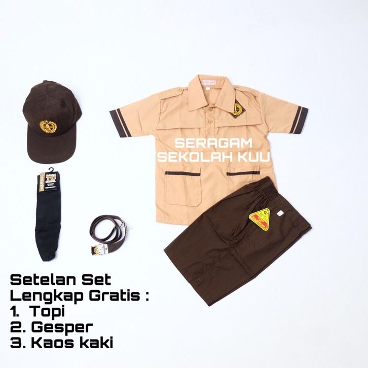 Setelan Lengkap Seragam Pramuka Siaga Seragam Pramuka SD Laki Laki Baju Pendek Celana Pendek Baju Pramuka SD Laki Laki