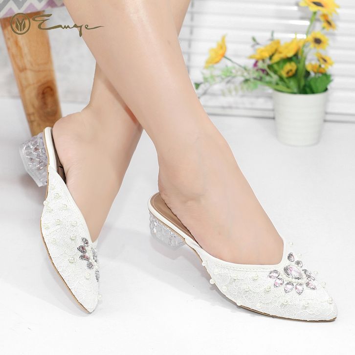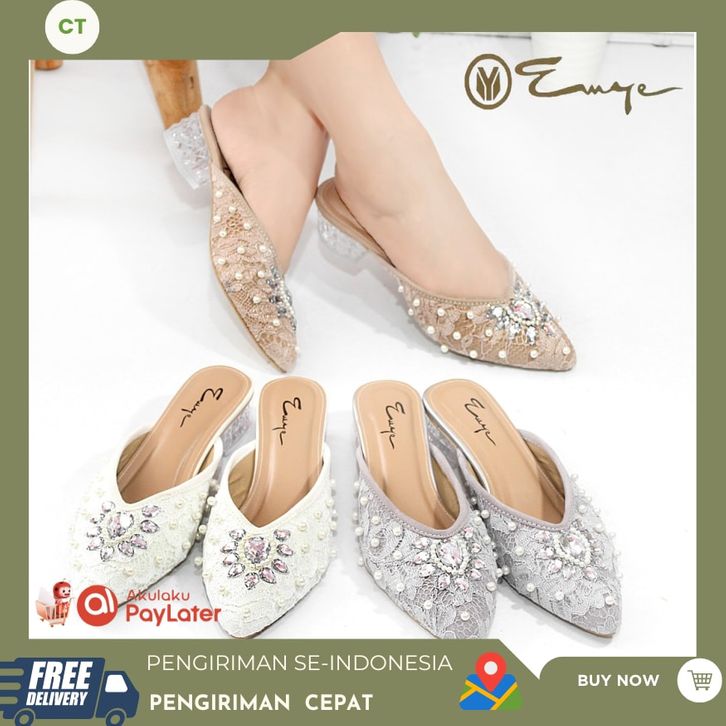 SEPATU SLOP BRUKAT PAYET GLITTER ORIGINAL WANITA HAK KACA 3CM / SEPATU PESTA PAYET PENGANTIN