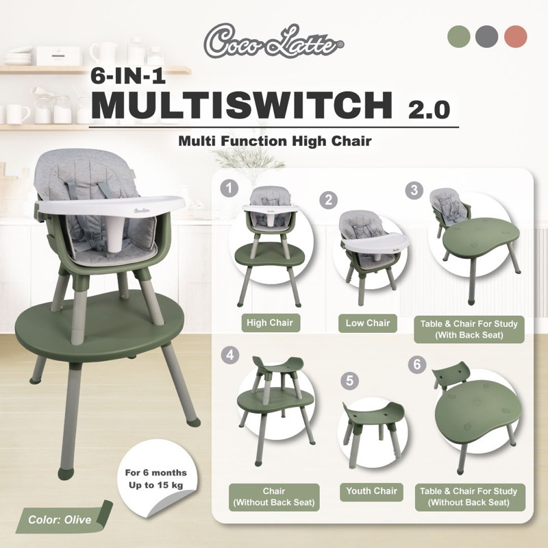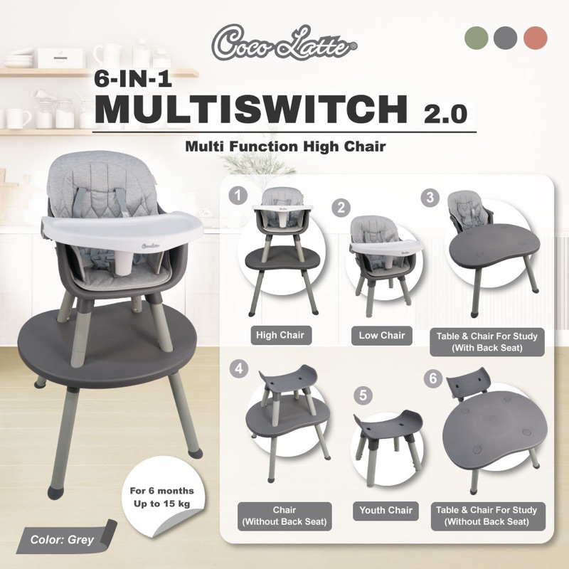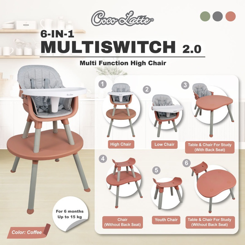 Kursi makan bayi Cocolatte High Chair 6 in 1 Multi Switch 2.0 / Kursi Makan Bayi Multiswitch 2.0