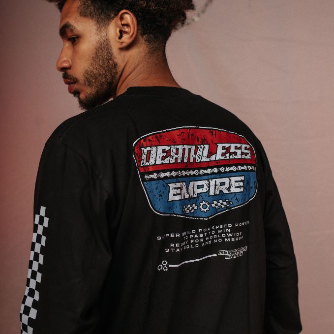 KAOS PRIA DISTRO ORIGINAL DEATHLESS KAOS LENGAN PANJANG GARAGE RED & BLUE LS MOTOR SERIES KAOS PRIA KEREN DISTRO