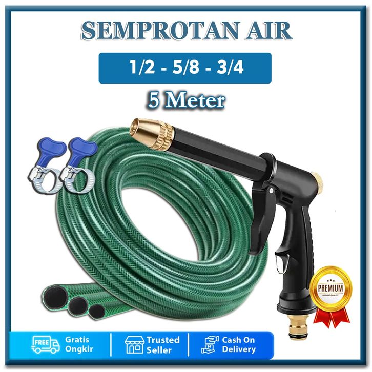 PAKET KEPALA JET SPRAY SEMPROTAN SELANG AIR HIJAU ANTI LUMUT 5 METER 1 ROL ALAT CUCI MOTOR MOBIL