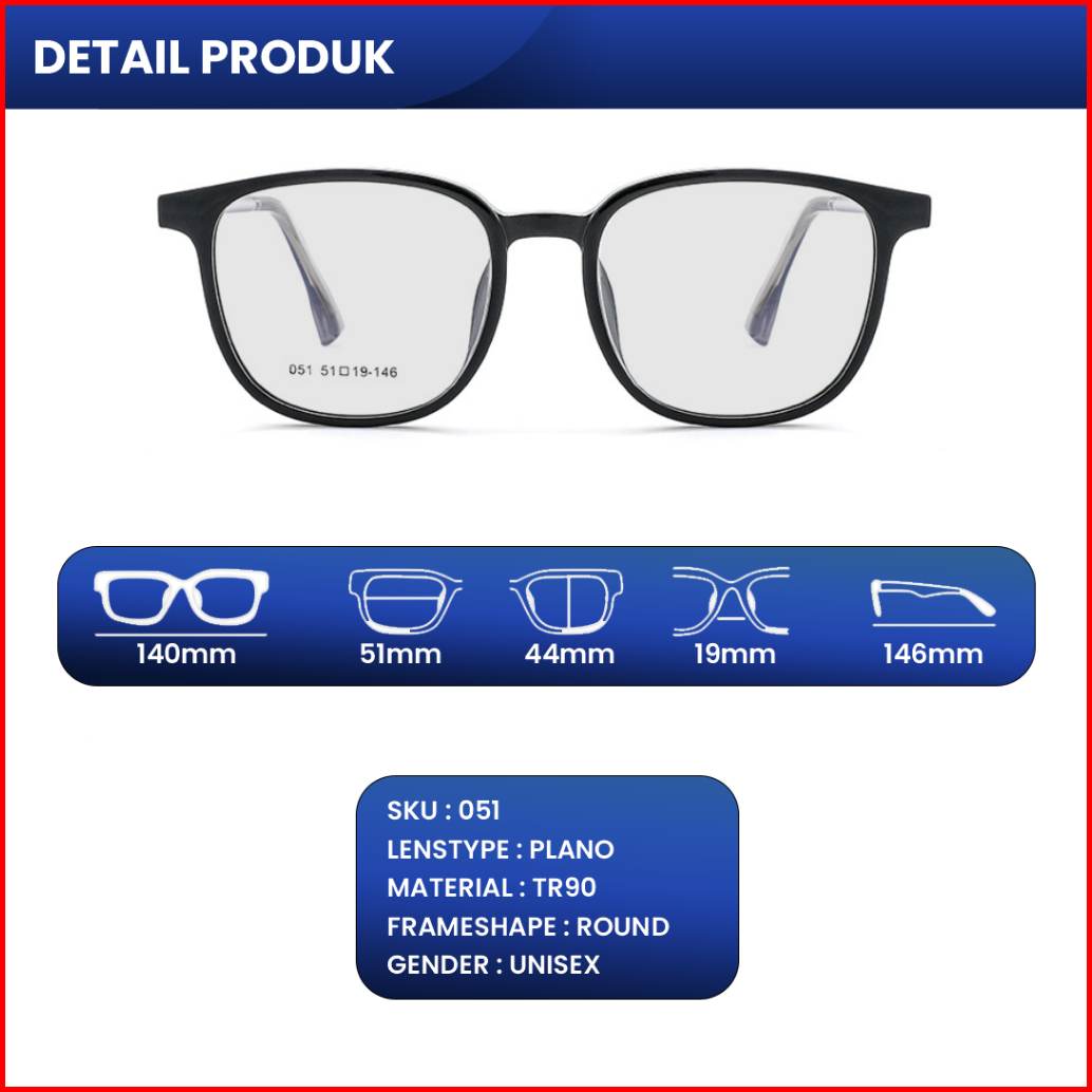 Iooi Eyewear - Kacamata Round Tr90 Elastis Stylish Antiradiasi Blueray Photocromic Pria Wanita 051