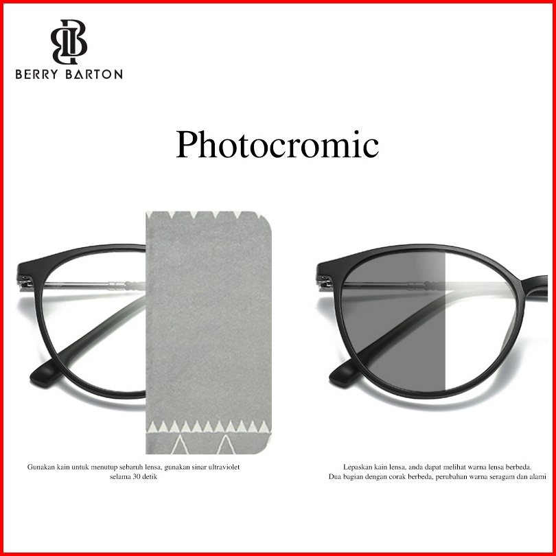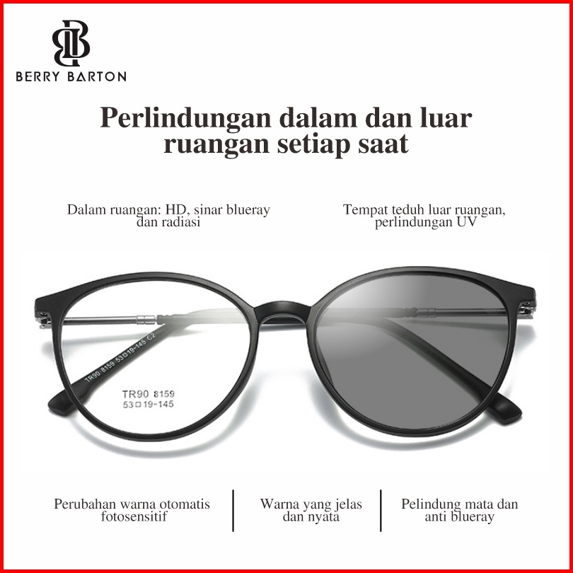 Berrybarton - Kacamata Pelajar Bulat Plastik Tr Anti Radiasi Photocromic Blueray 8159