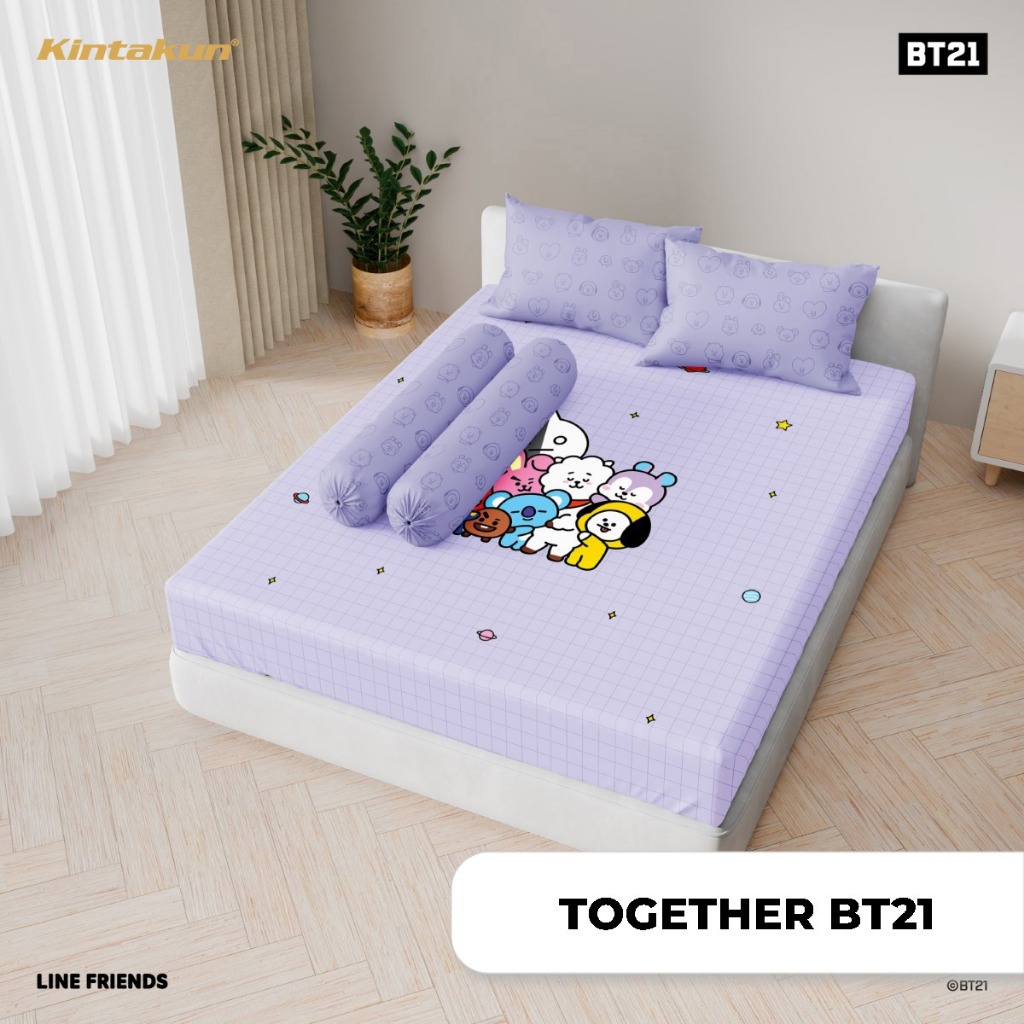 Sprei Fitted Ukuran 21King 180x200 Tinggi 25cm Kintakun DLUXE Edition BT21 / Sprei Anak