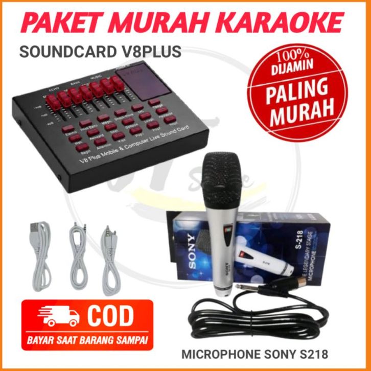 paket karaoke soundcard v8 plus microphone dynamic sony s218 / paket rekaman / mixer audio / soundcard komplit live