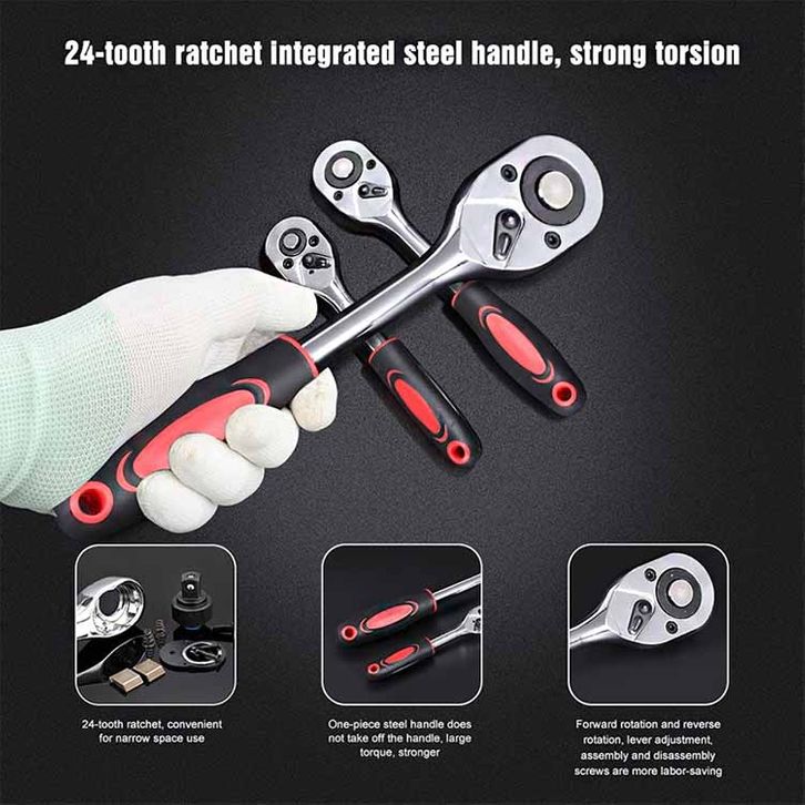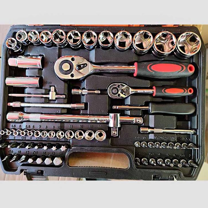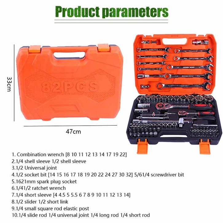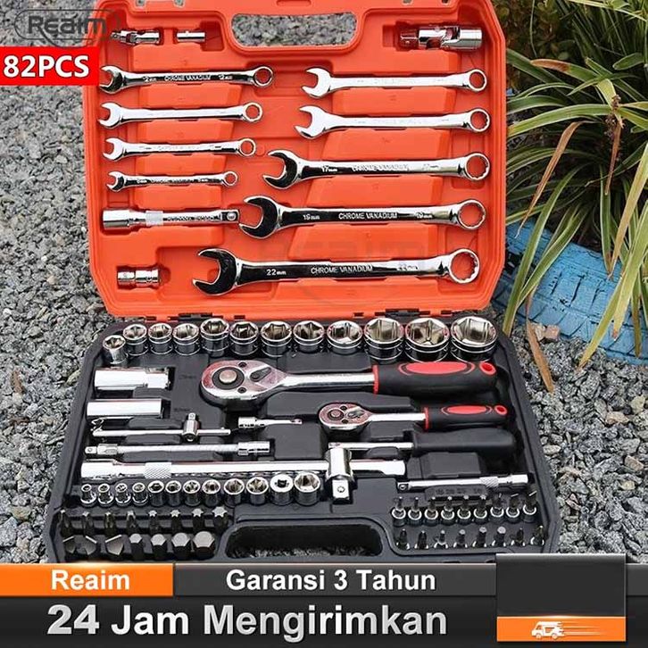 Reaim 82pcs Tool Kit Kunci Shock Set Alat Perbaikan Mobil Profesional Kunci Socket Set Lengkap As Torsi Set Alat Kunci