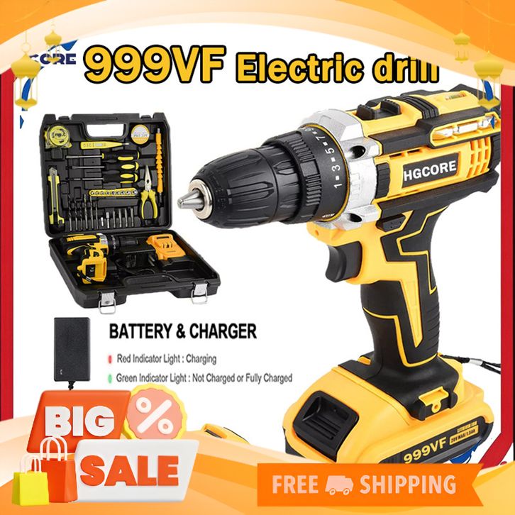 [Mall] HGCORE 999VF Mesin Bor Baterai Tangan Cordless Drill Battery/Bor Cordless Power Drills Kit/Dengan 2 Baterai Cordl