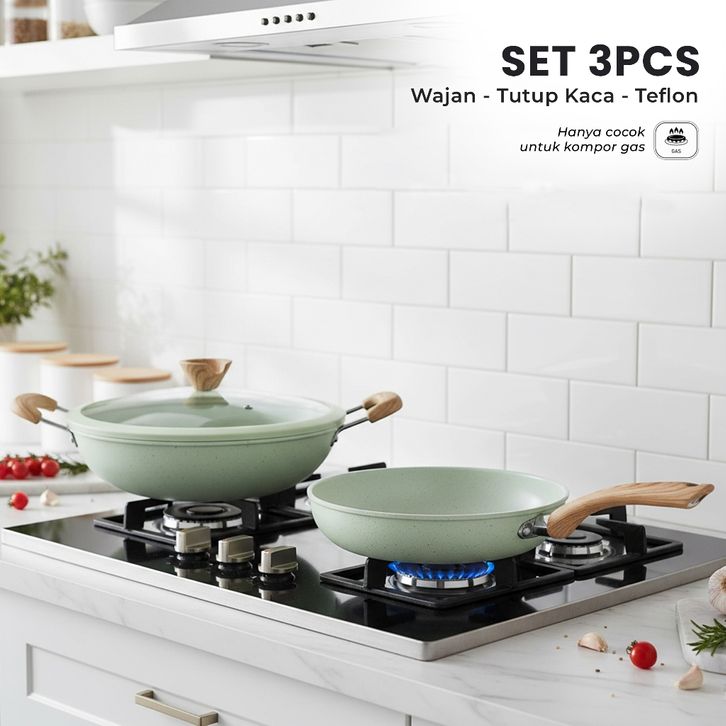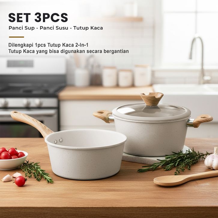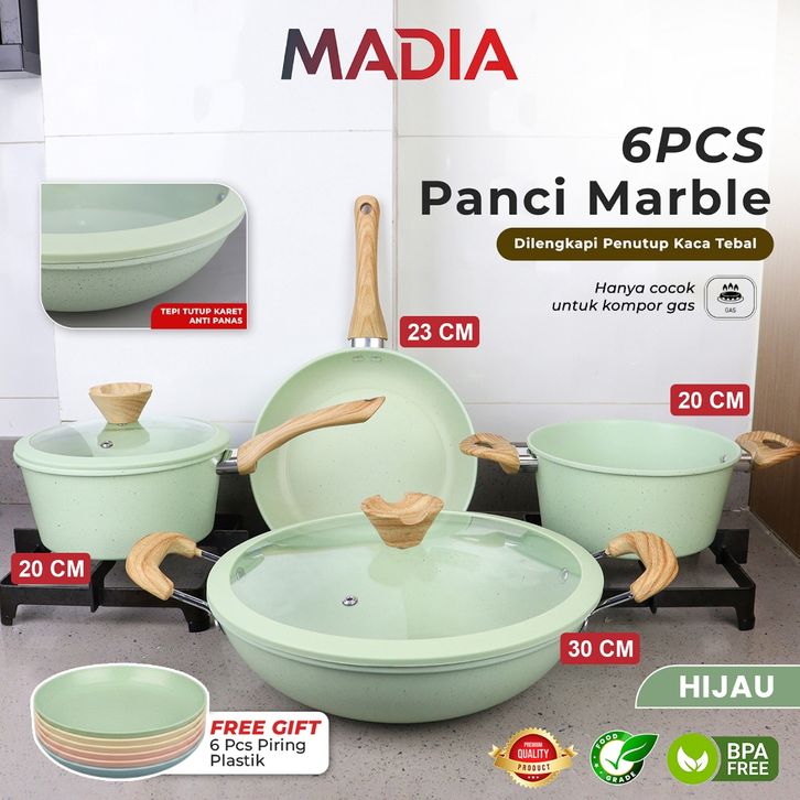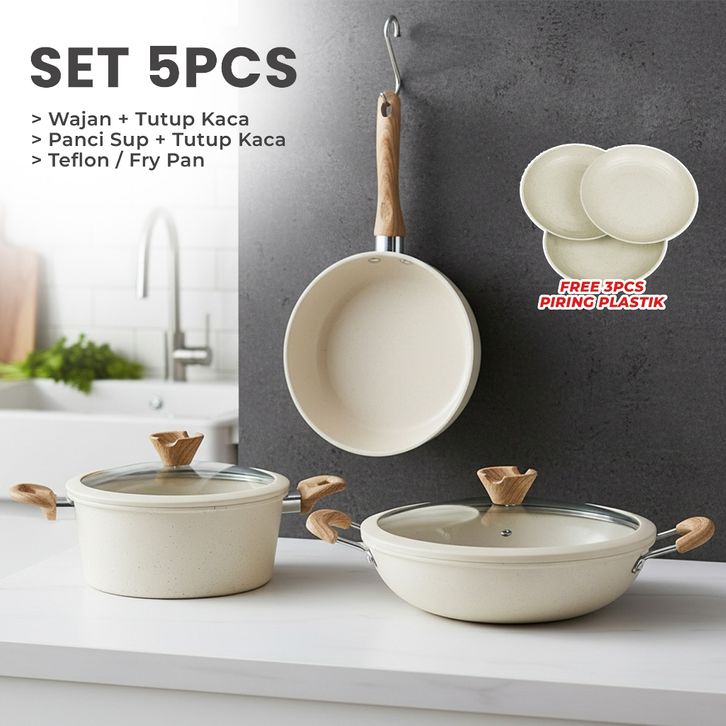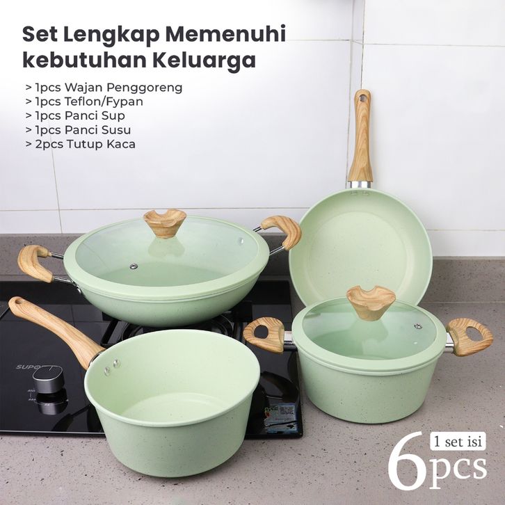 Panci Wajan Set 6 Pcs Anti Lengket Serbaguna Estetik Free Piring