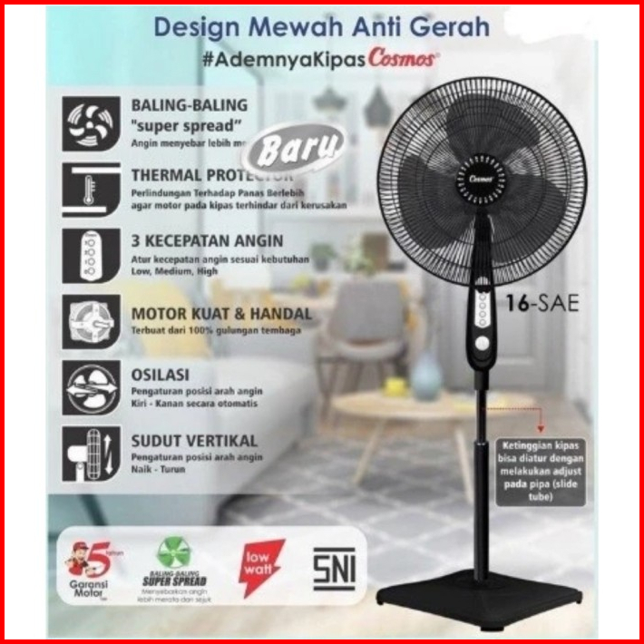 Cosmos Kipas Angin Standing Berdiri 16 Sdb Sae 16 Inc Hitam Original Garansi Resmi Kuat Kokoh Besar