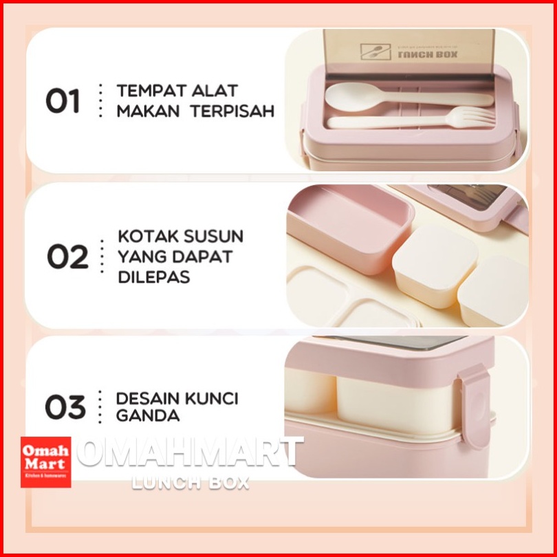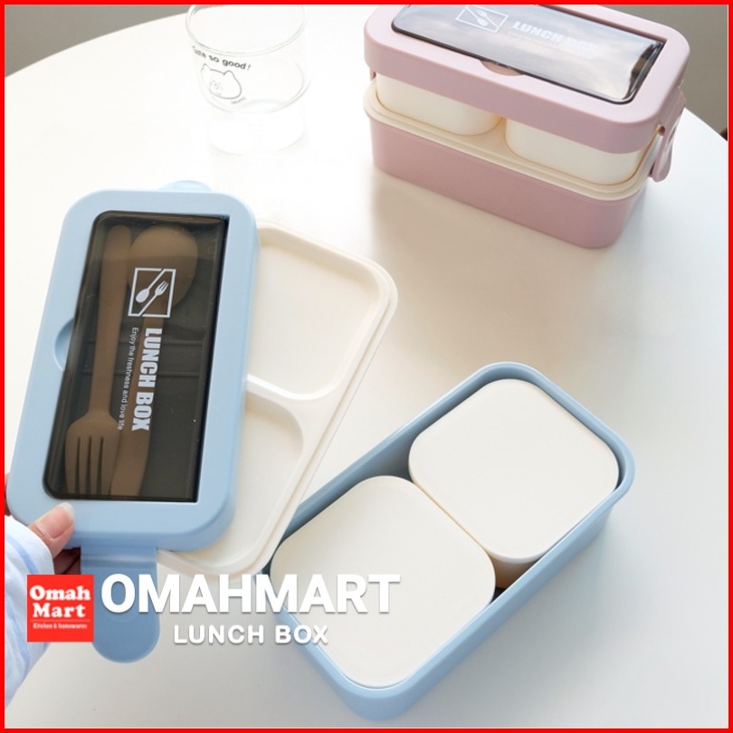 Tempat Makan Anak Sekolah Set Tas Bekal Susun 2 Sekat 3 Plastik Bpa Free Microwaveable