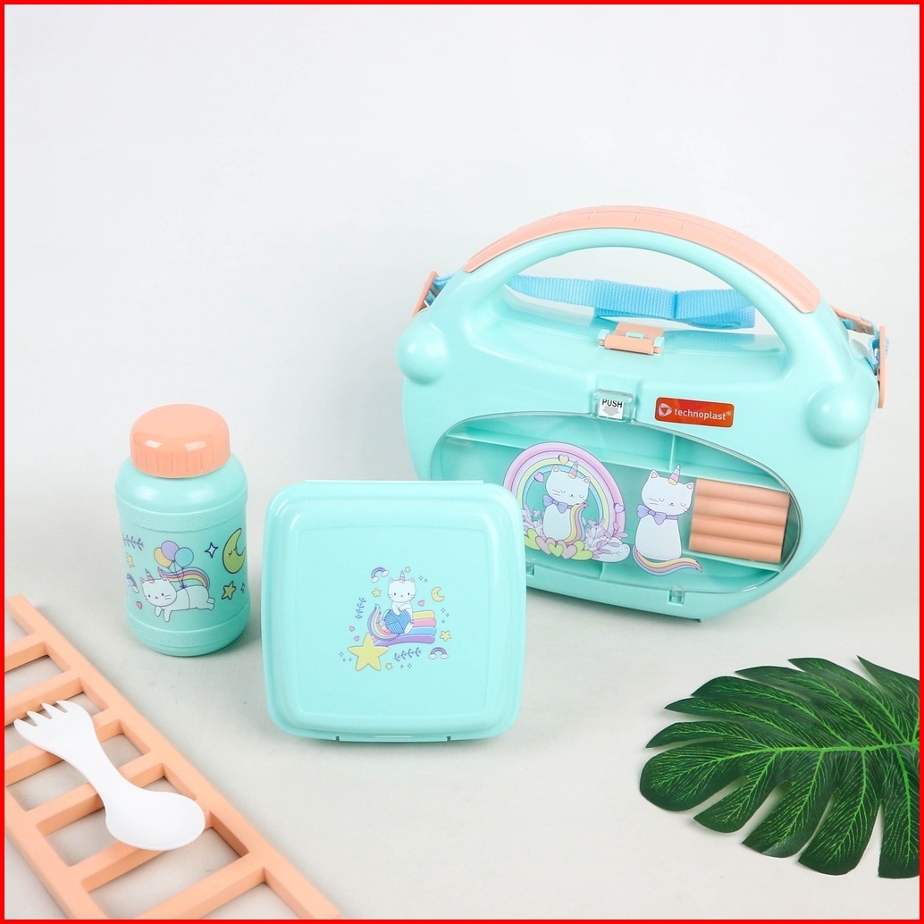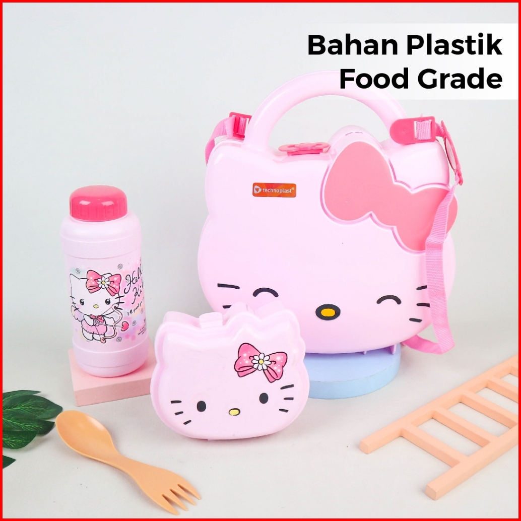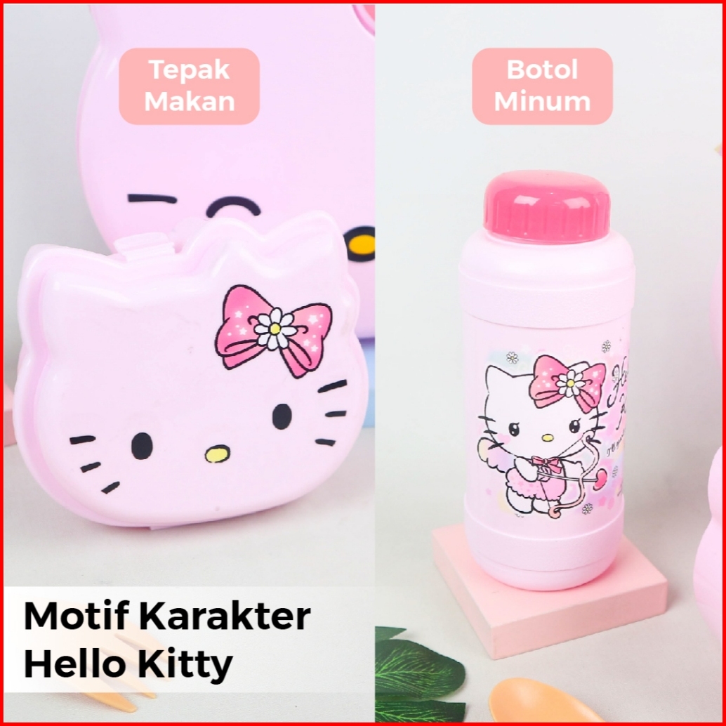 Khusus Tempat Bekal Makan Set Hello Kitty Set Howdy Cat Series Cupid School Box Plus Tali -rd