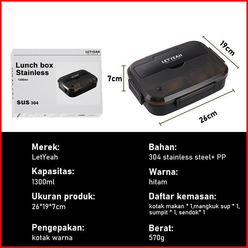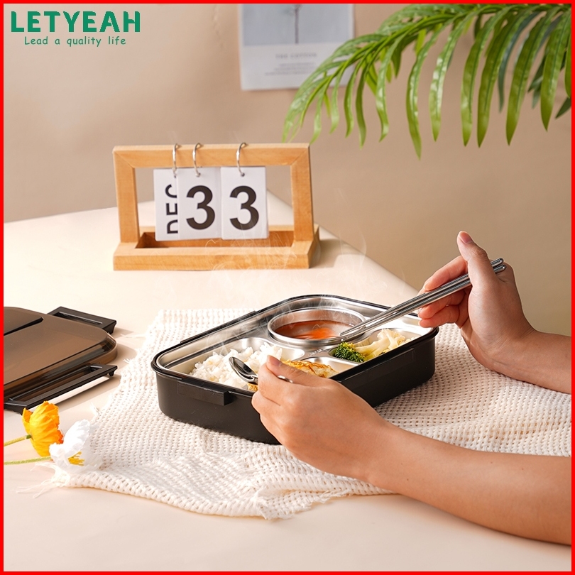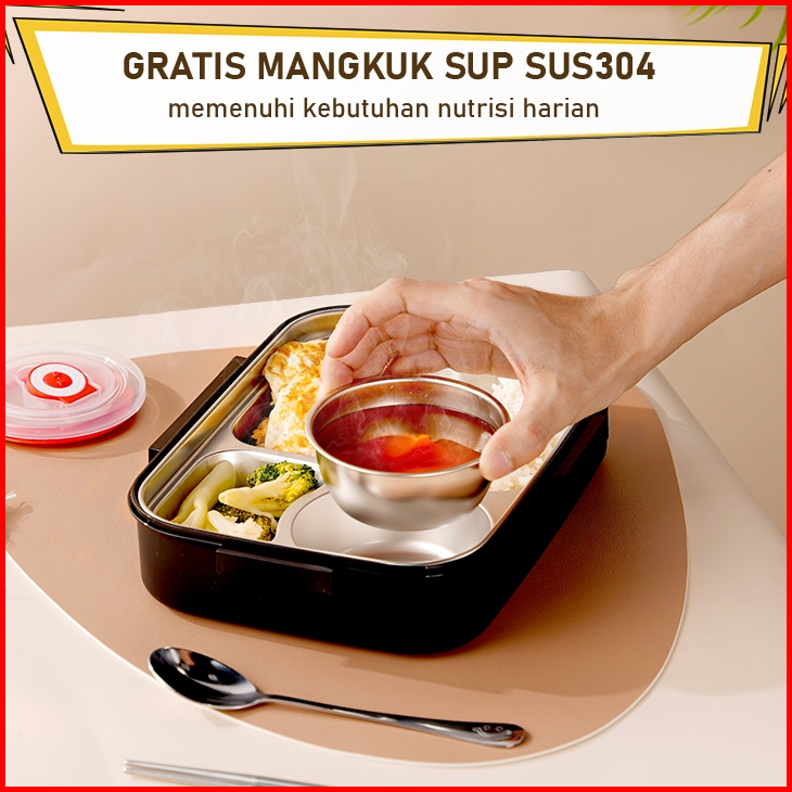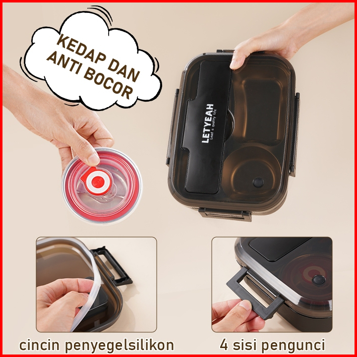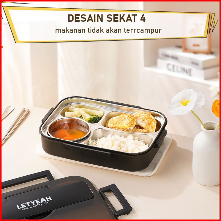 Letyeah Kaizenliving Lunch Box Set Stainless Steel 304 Kotak Makan 4 Sekat Ditambahkan Mangkuk Sup Sendok Dan Sumpit Tem