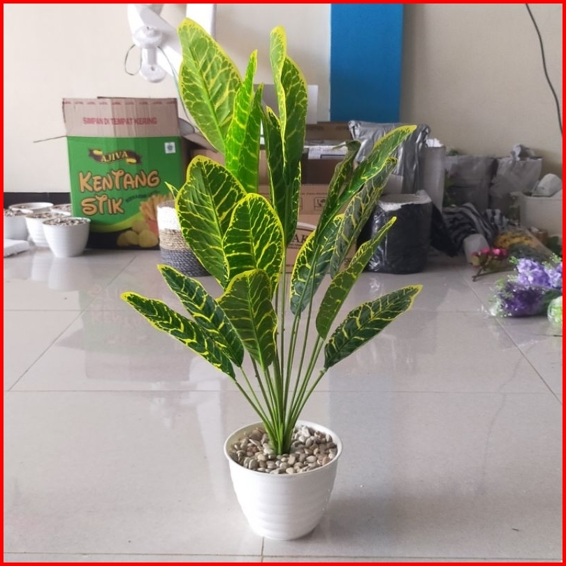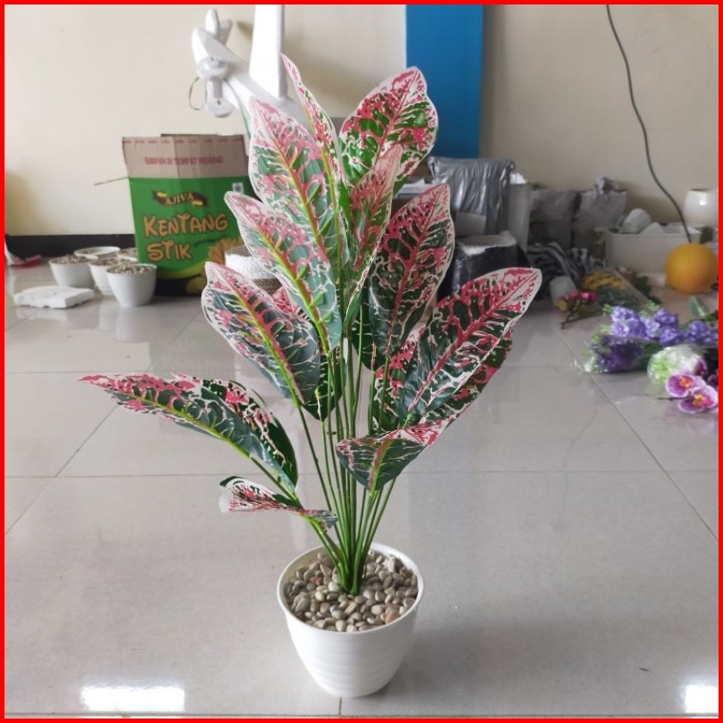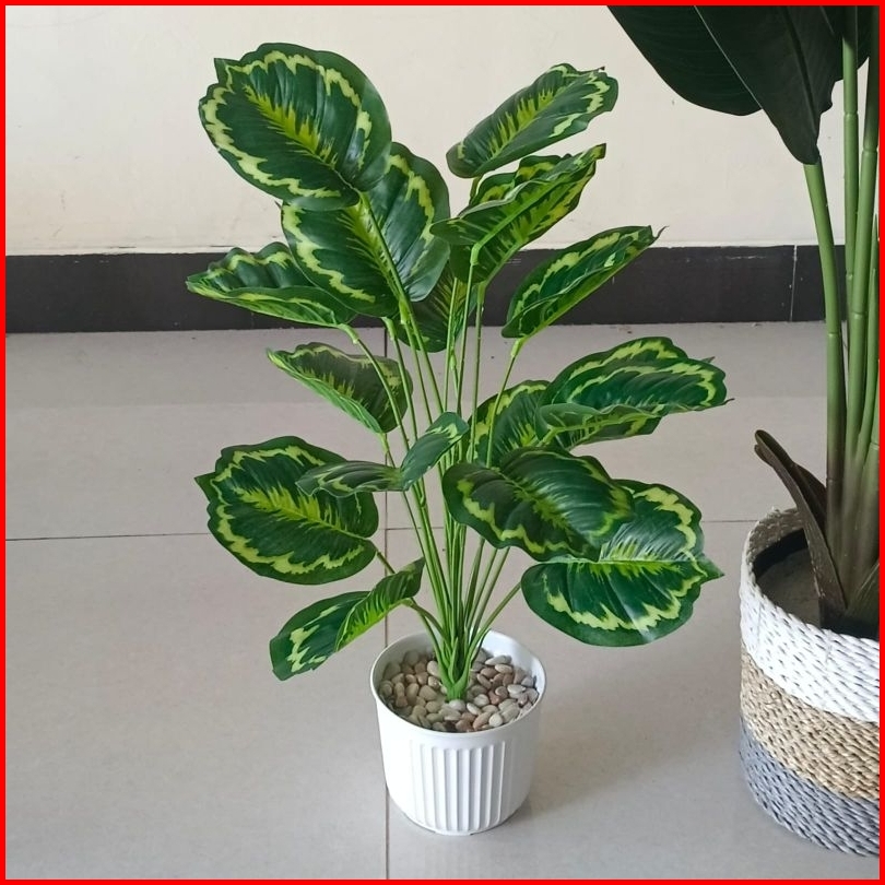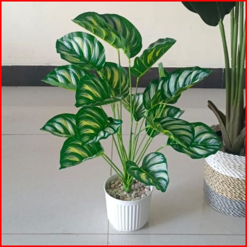 Daun Monstera Besar 18 Cabang Dan Pot Kayu Bunga Hias Bunga Artificial Bunga Plastik Bunga Palsu