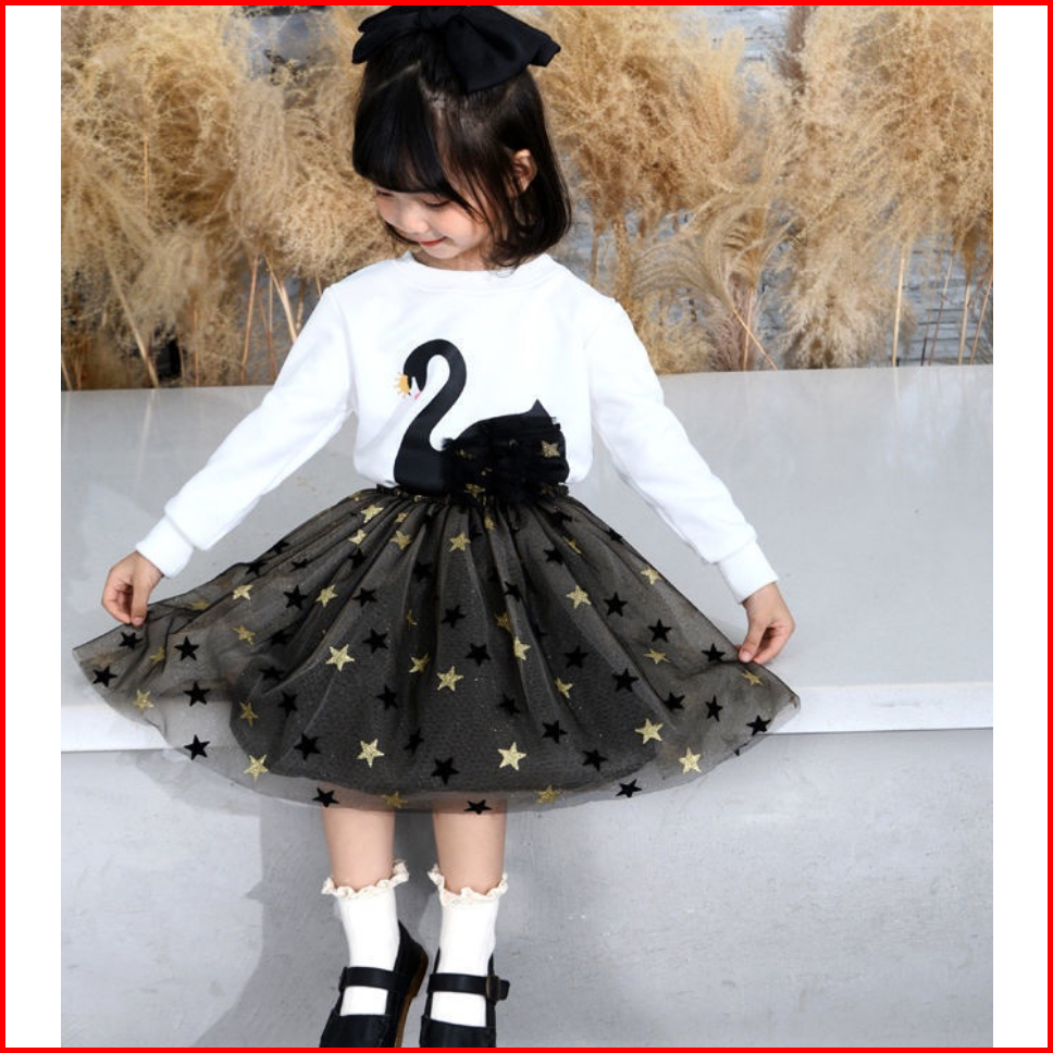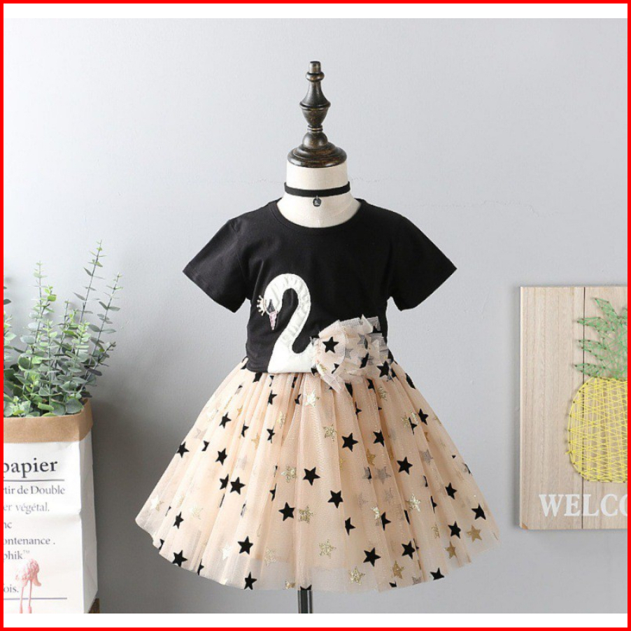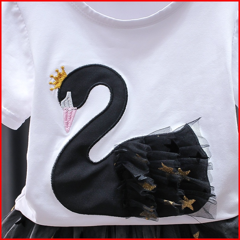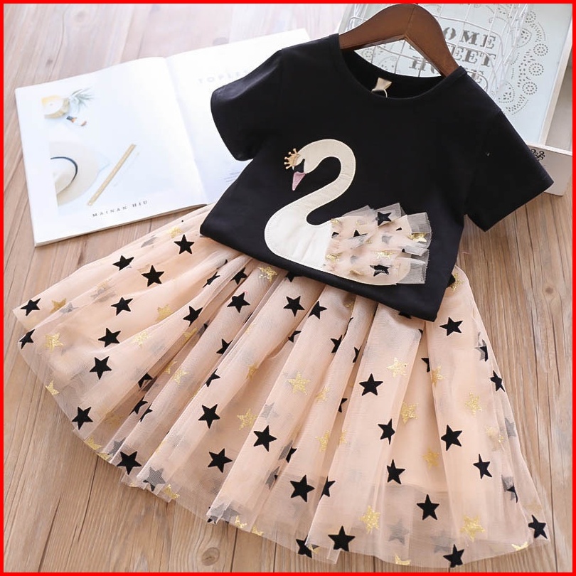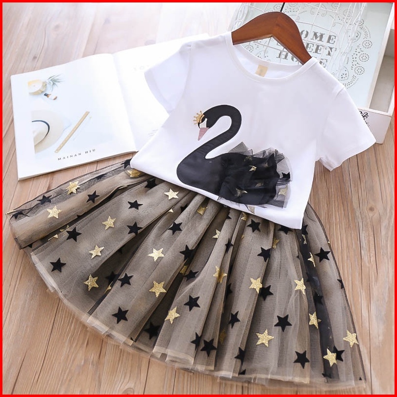 2-6 Tahun Gadis Putri Gaun Katun T-shirt Setelan Rok Pendek Rok Angsa Rok Bayi Sweet Flamingo Ebv Bayi Baju Anak Setelan