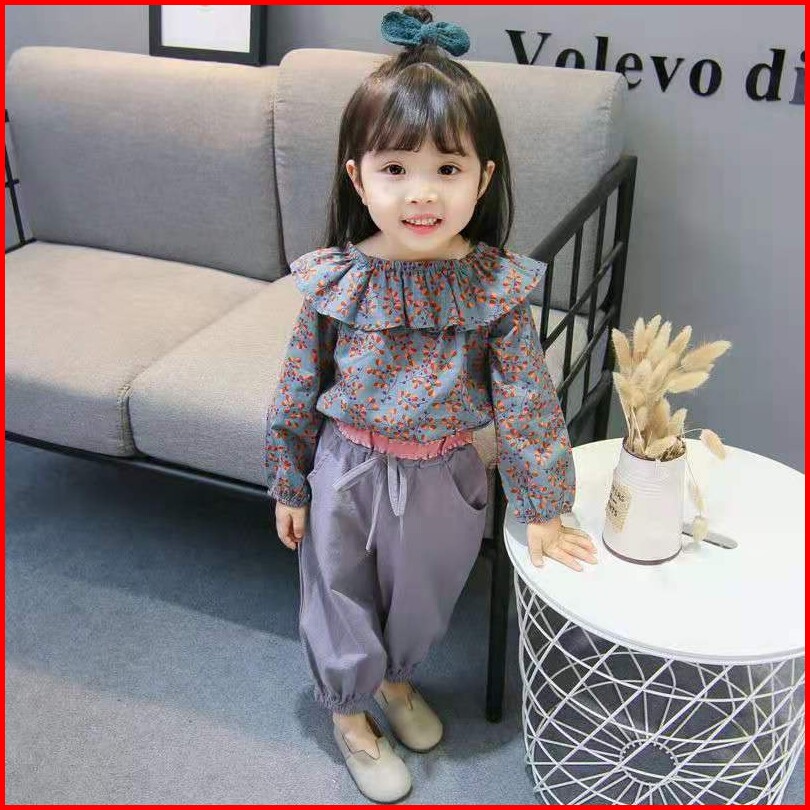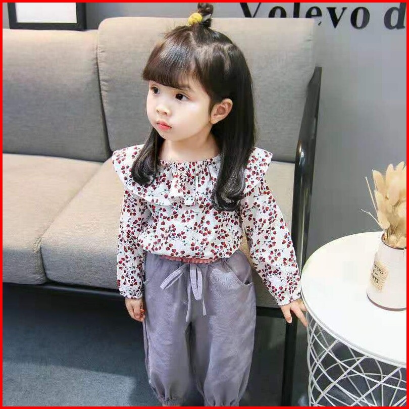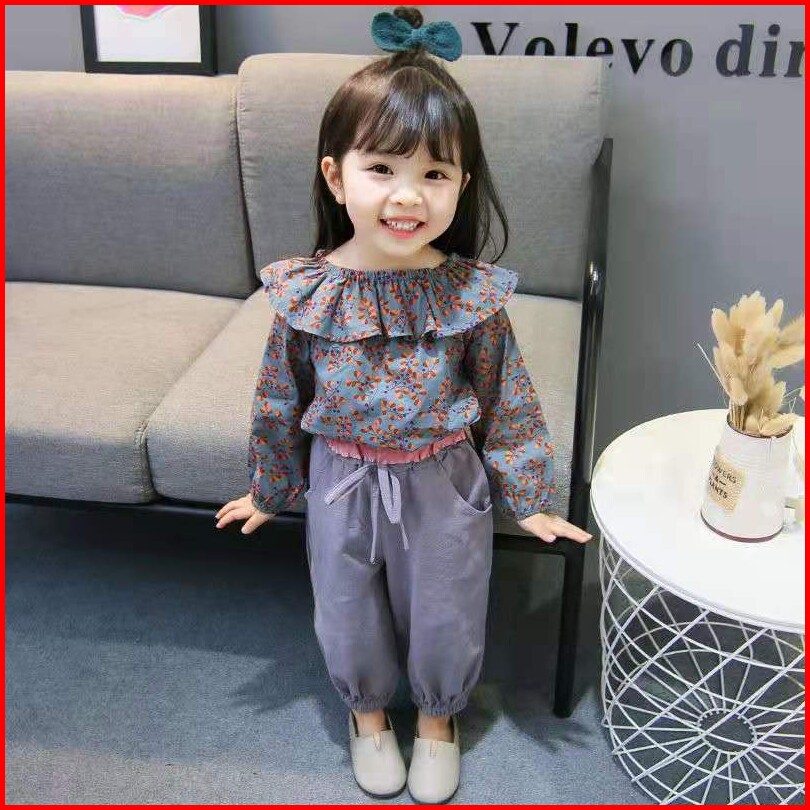 Twinkle Setelan Baju Anak Perempuan Lengan Panjang Motif Bunga Bahan Katun Premium Usia 2-5 Tahun