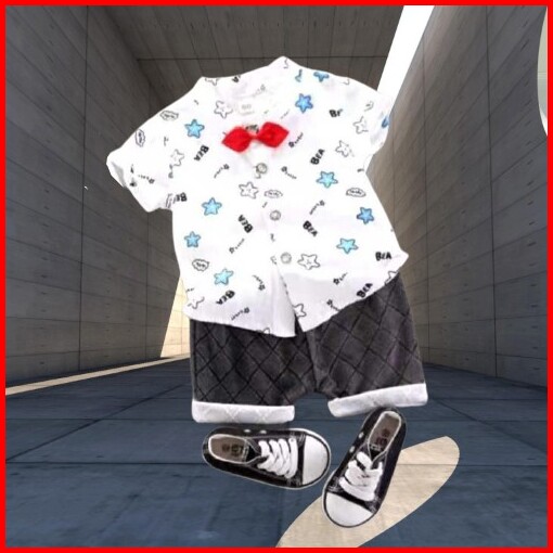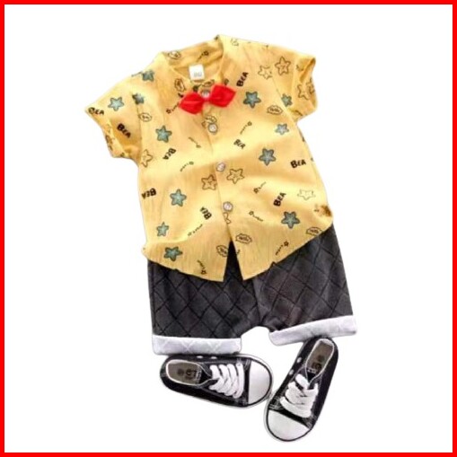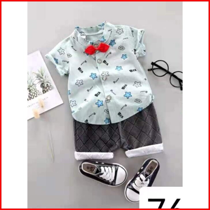 Promo 7.7 Heybaby Kemeja Hello Stars 76 Ebv Setelan Kemeja Bayi Laki-laki Lengan Pendek