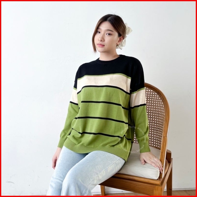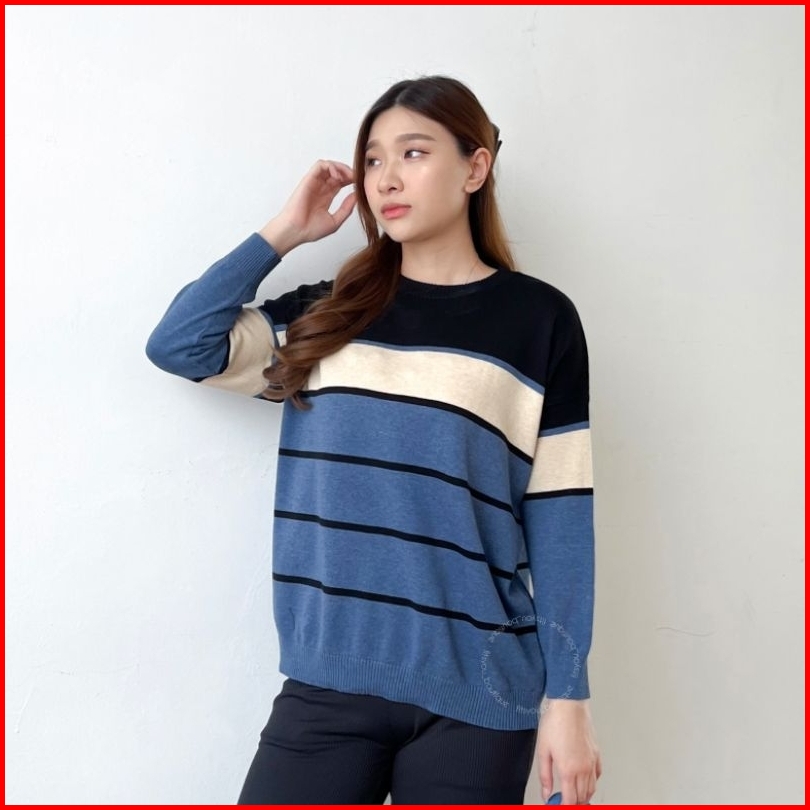 Amanda Knit Tops Atasan Rajut Katun Halus Adem Tangan Panjang Sweater Cewe Hijab Friendly