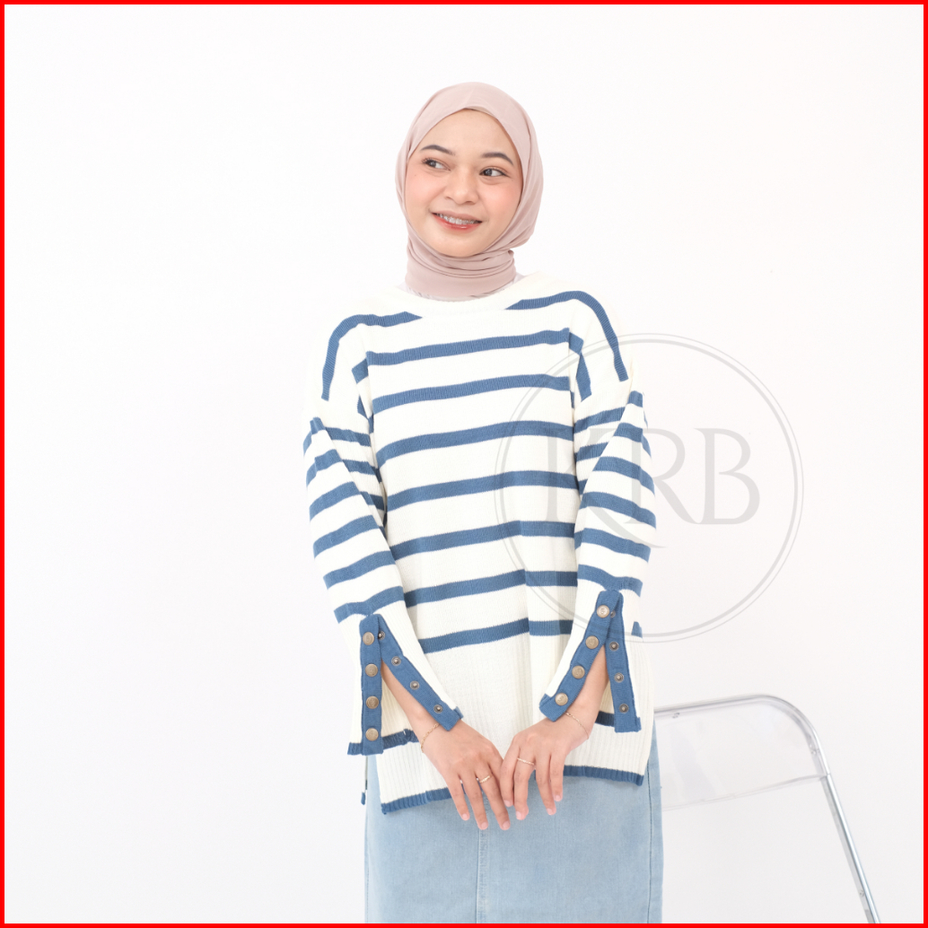 Krb Blouse Inara Kancing Stripe Aktif Outer Wanita Rajut Atasan Wanita Polet