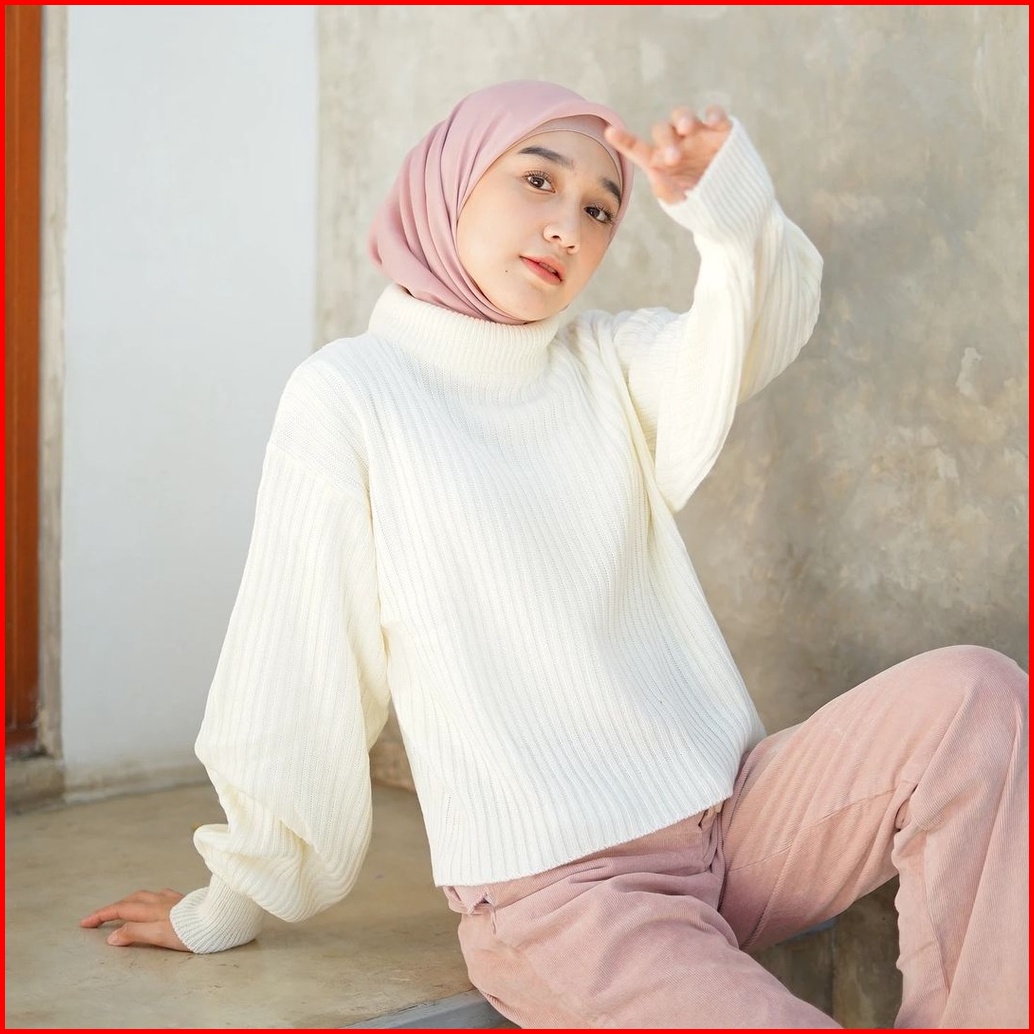 Arumi Crop Turleneck Knit Fk Rajut Premium Atasan Wanita Rajut Polos