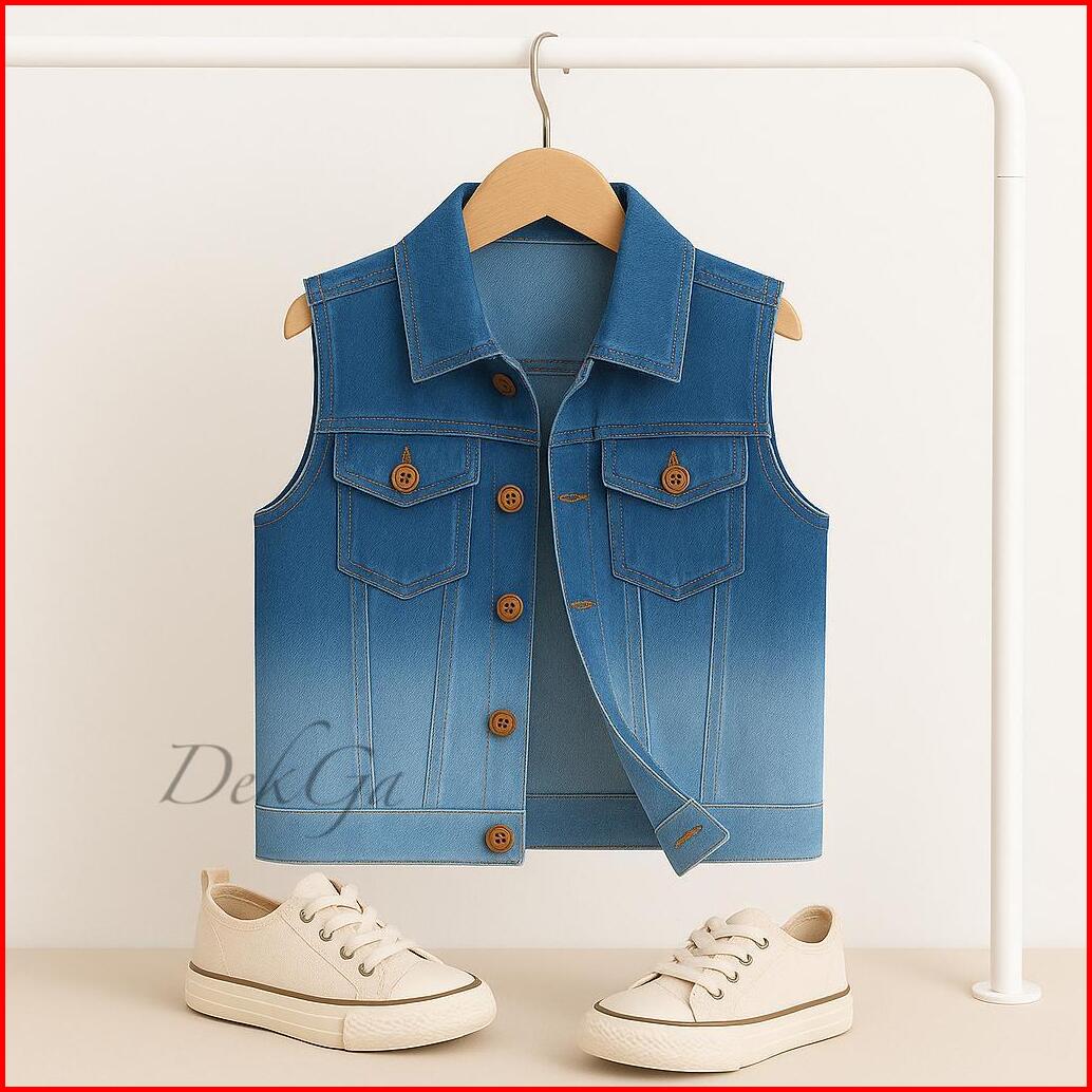 Rompi Jeans Anak Unisex Rompi Kerah Jeans Denim Premium 3-9tahun