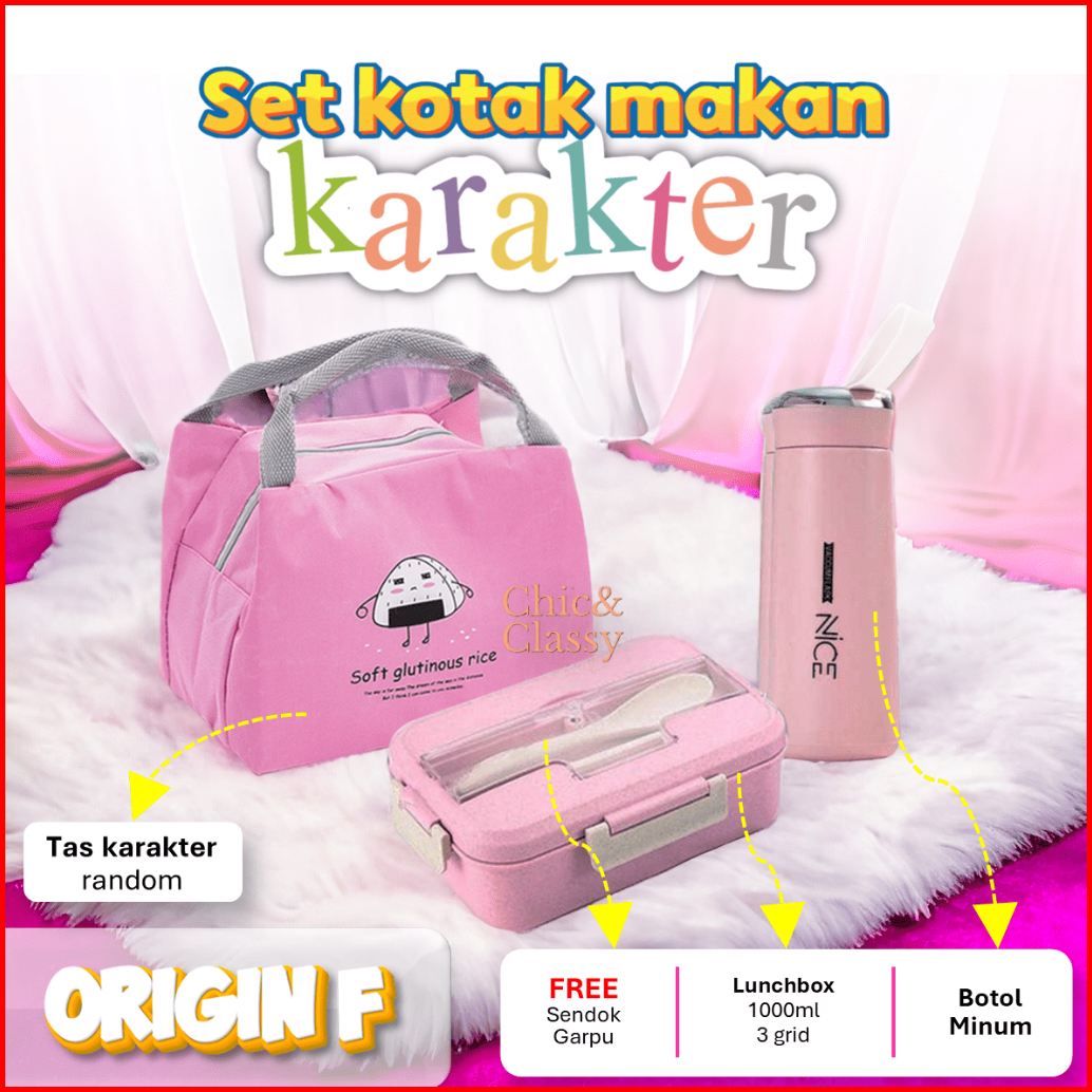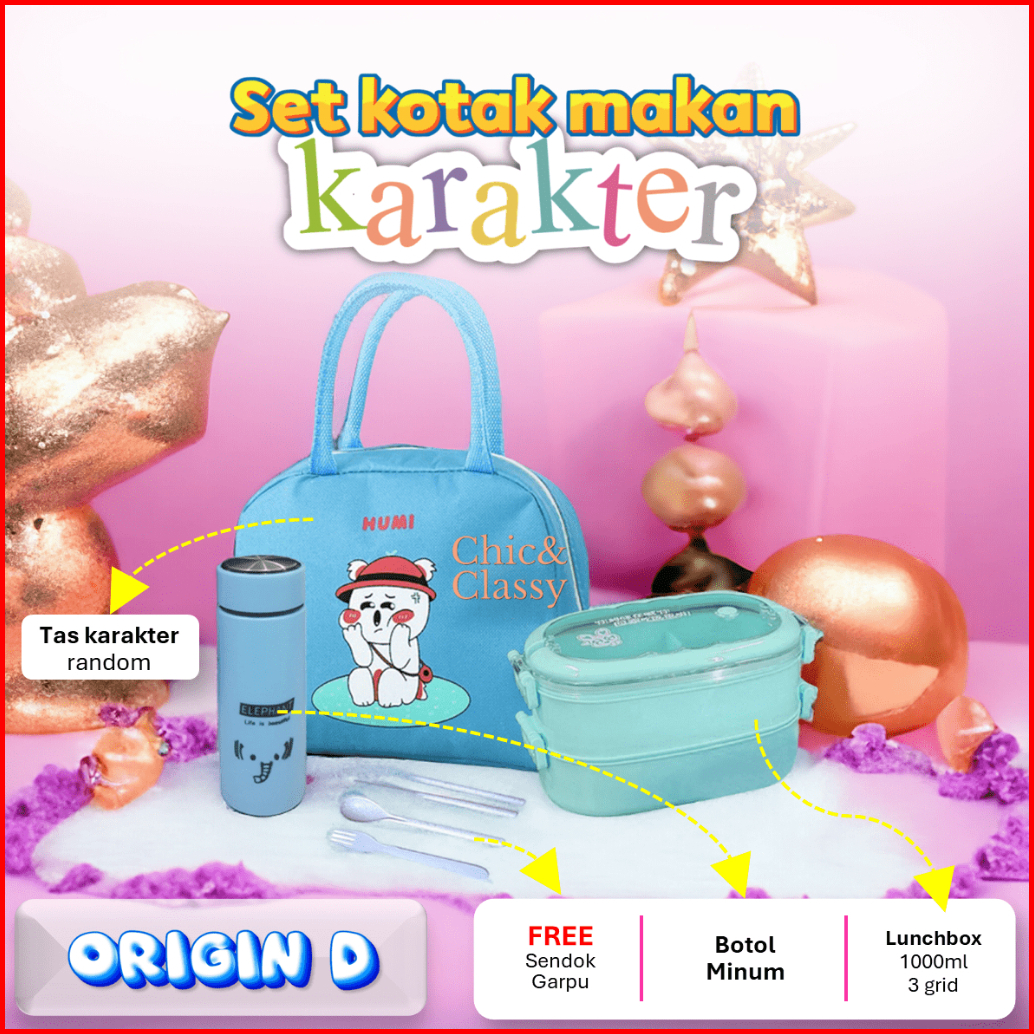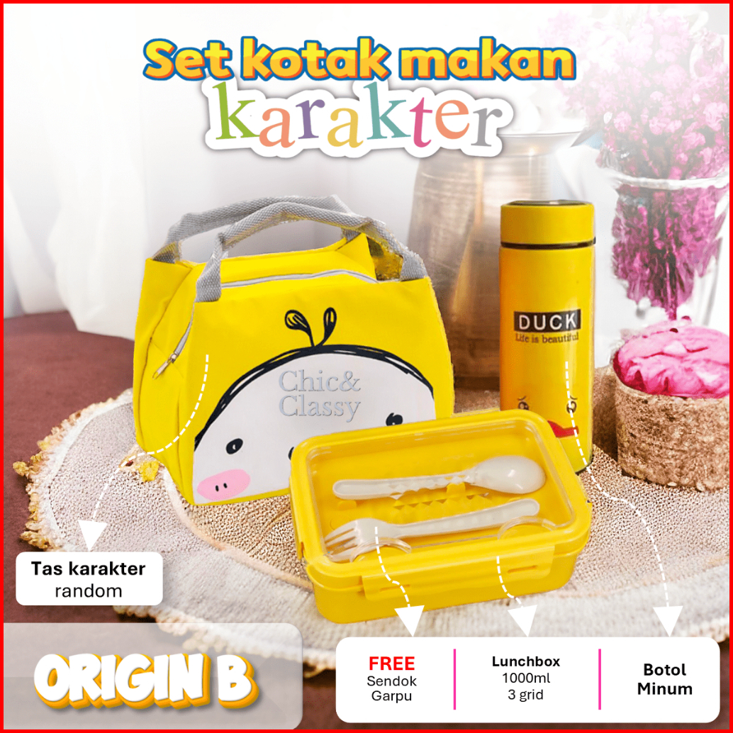 Paket Lengkap Lunch Box Set Kotak Makan Botol Minum Tas Bekal Sendok