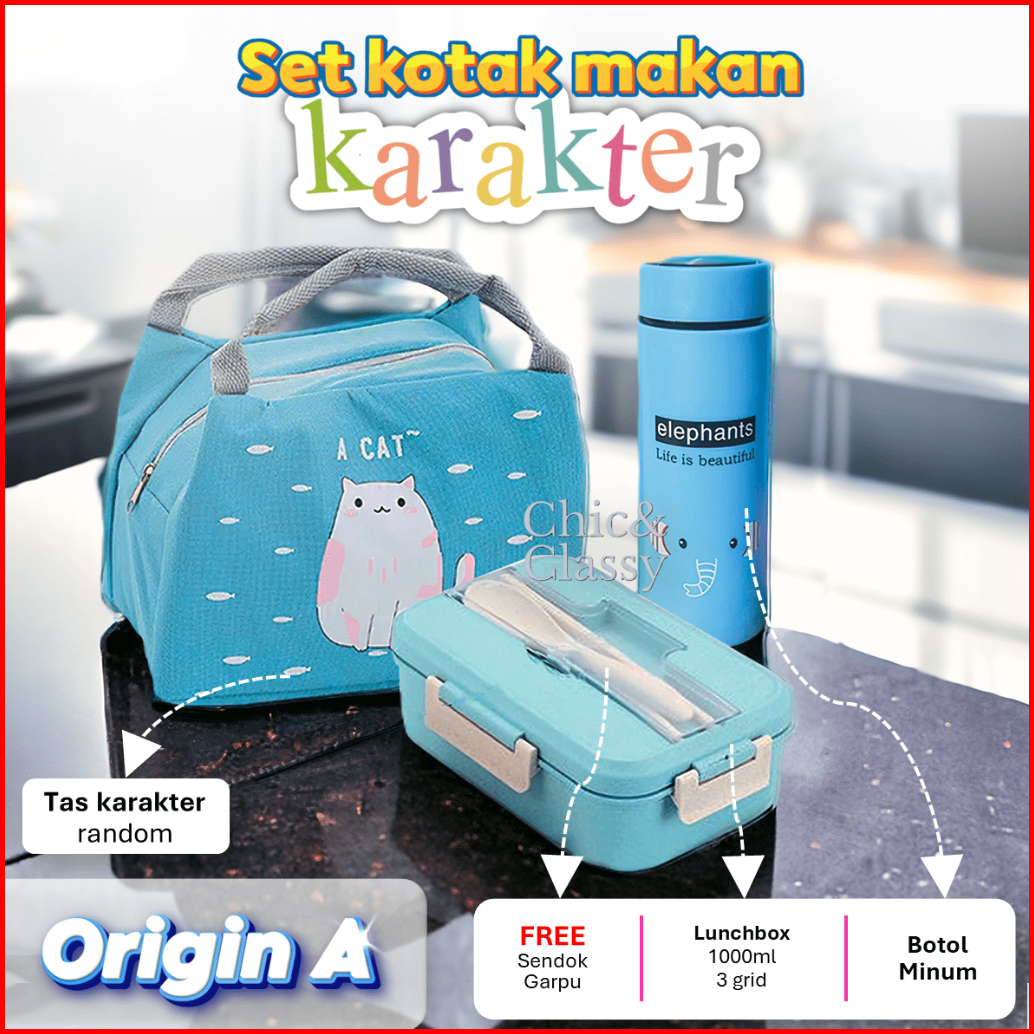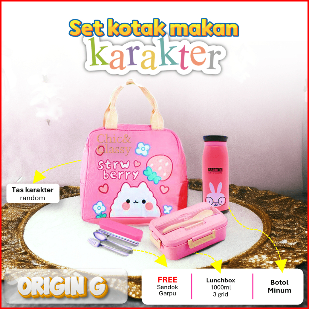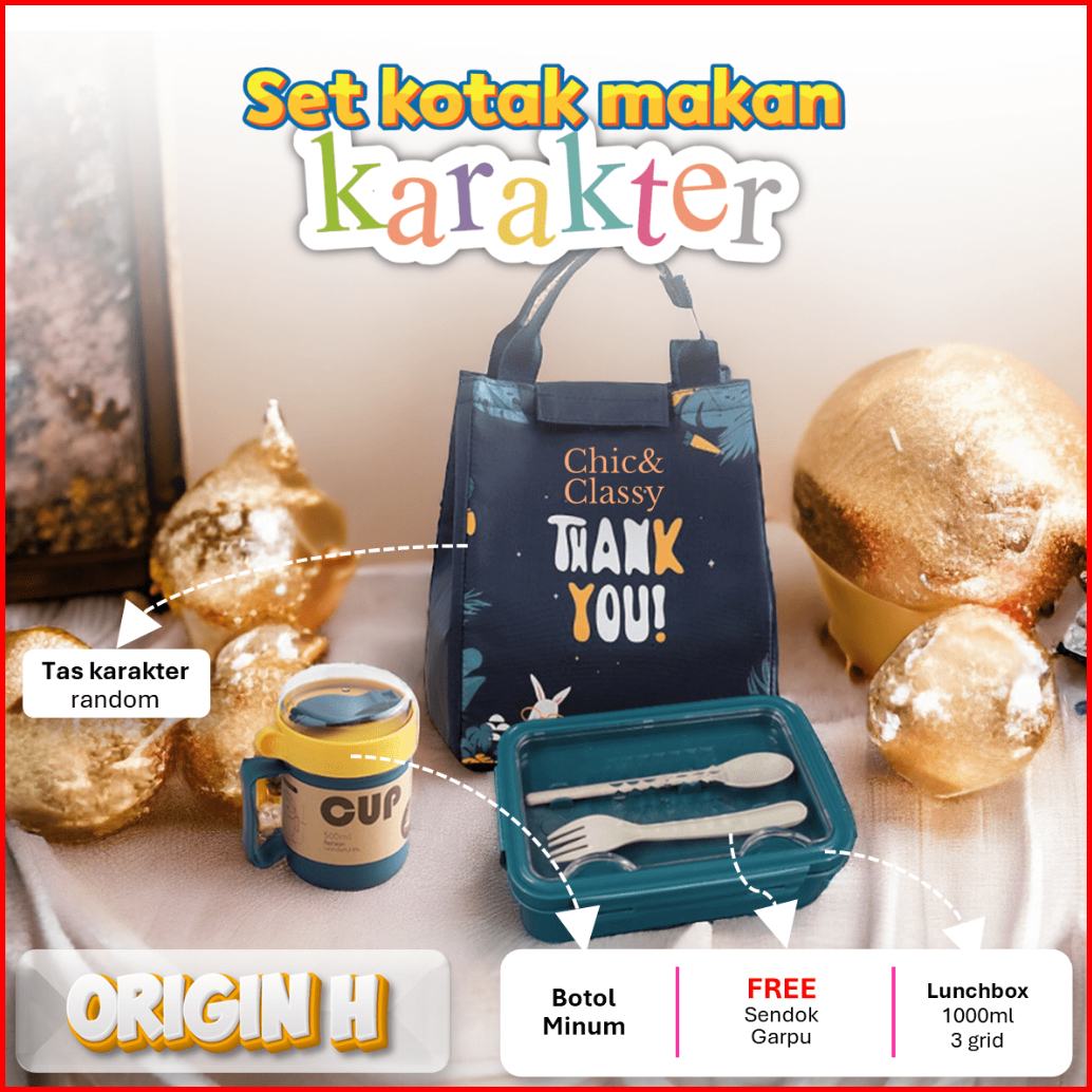 Paket Lengkap Lunch Box Set Kotak Makan Botol Minum Tas Bekal Sendok