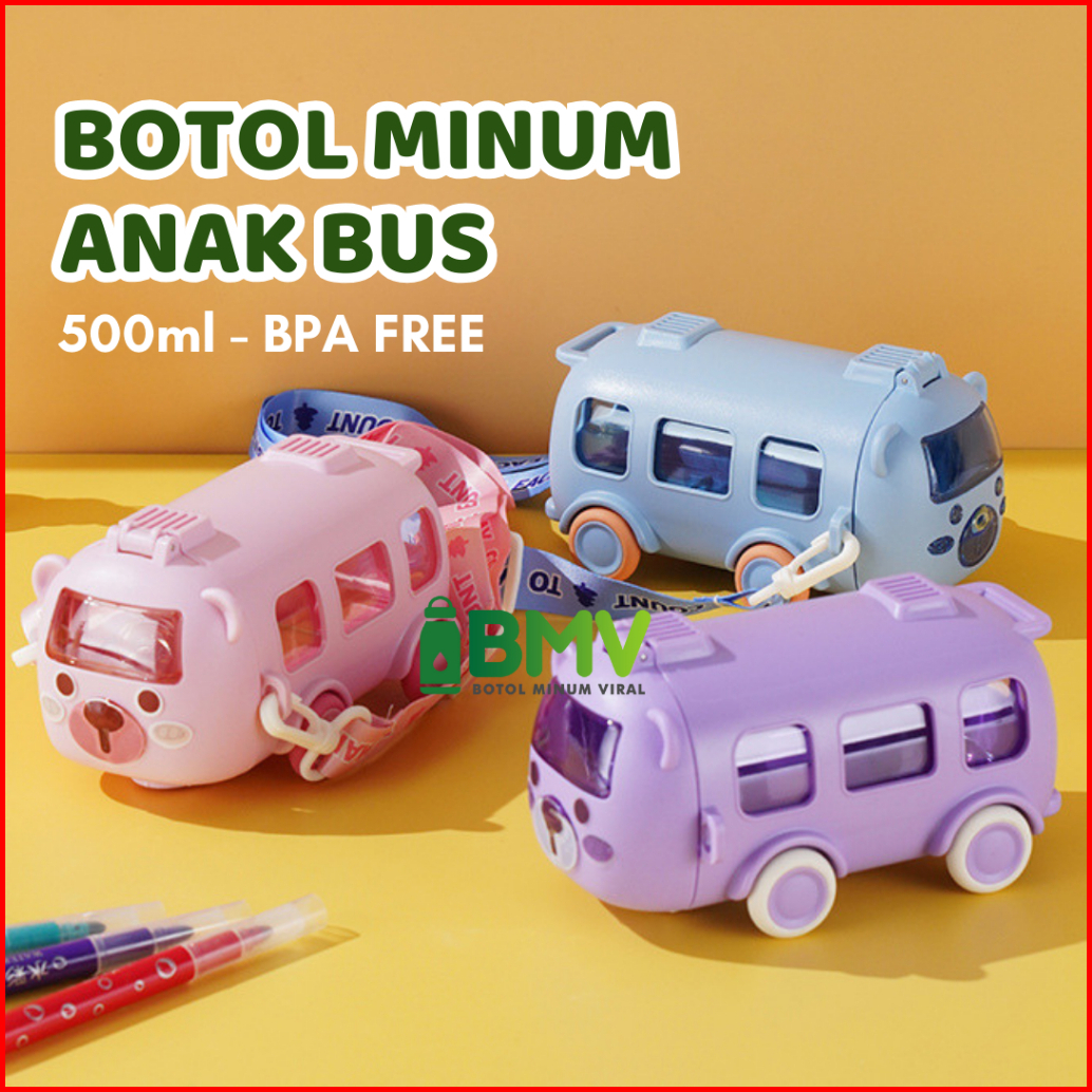 Botol Minum Anak Sekolah Karakter Lucu Sedotan Tali Panjang Viral 500ml