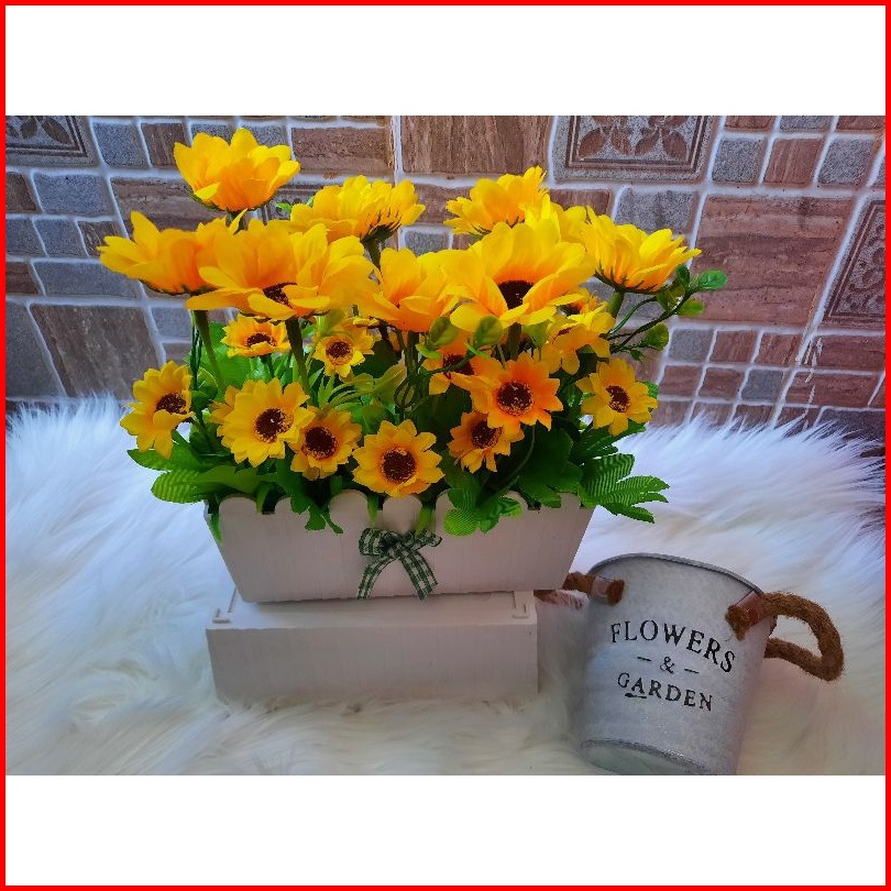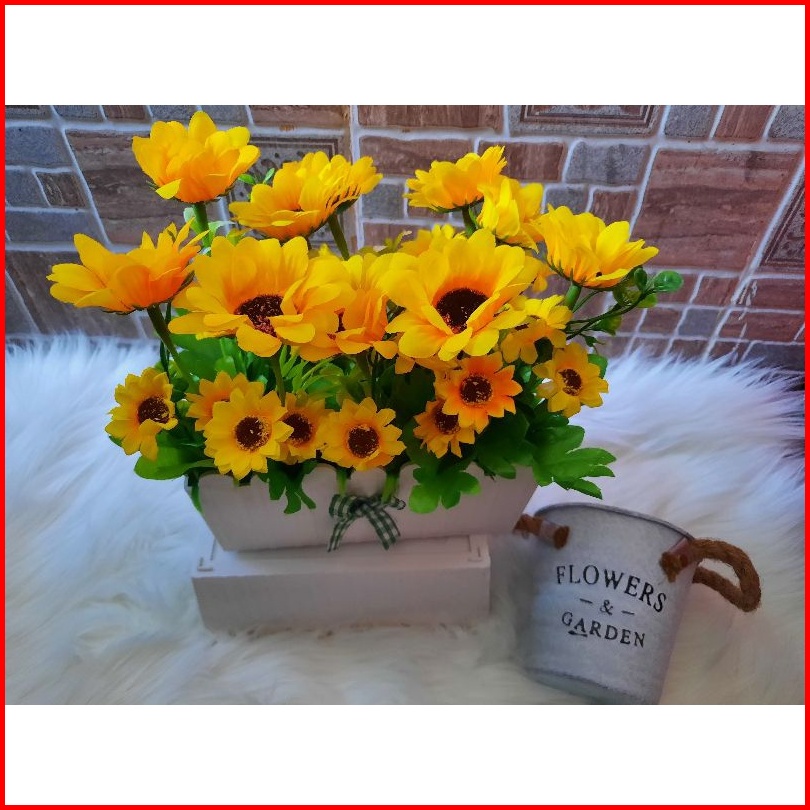 Bunga Matahari Artificial Pot Pagar Panjang Bunga Meja Hiasan Ruang Tamu Dekorasi Rumah